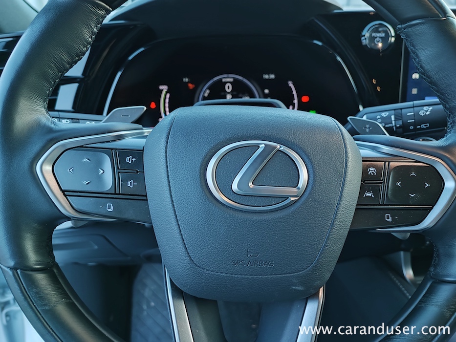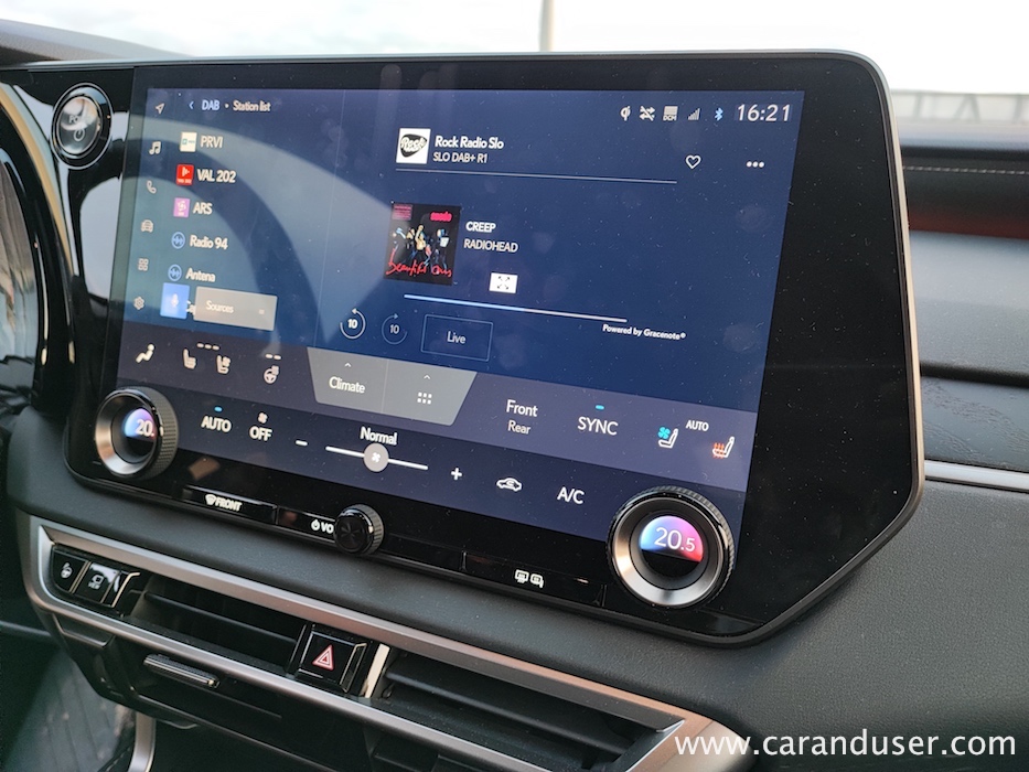Priključni hibrid združuje 2,5-litrski atmosferski agregat, e-motor in baterijo kapacitete 18,1 kWh. Sistemska moč znaša zmogljivih 306 KM, kar zajetnega RX-a do stotice ponese v okroglih sedmih sekundah, kljub temu pa je bolj kot agilnost v ospredju varčnost. Poraba je kakopak odvisna od deleža električne vožnje, ki je je zaradi skoraj 2,3 tone težkega SUV-ja in porabo 24 kWh/100km relativno potratna, a opazno zreducira srebanje bencina. Na 100 kilometrov dolgi relaciji sem s kar nekaj avtoceste beležil žejo v višini 5,7 litra, kar je osupljivo malo za tak družinski voz. Električna avtonomija v praksi znaša 50 kilometrov v mestu in deset manj na avtocesti, kar zadosti vsakdanji rabi – z izjemo dnevnih »medpokrajinskih« migrantov. Pri Luxury paketu boste prejeli tudi dva polnilna kabla in sicer tistega klasičnega za hišno vtičnico, ki bo baterijo nasitil najkasneje v devetih urah, ter hitrega za izmenično polnjenje z največ 6,6 kW, kolikor največ sprejme RX-ov priključek. Takrat bo baterija polna v dveh urah in pol, kar ustreza daljšemu poslovnemu kosilu recimo. Ok, brezalkoholnemu pivu ali kozarčku barika s kolegom tudi.
