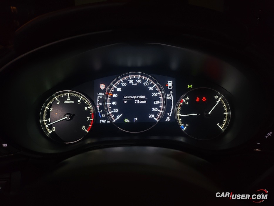Vendar se več iskrivosti opazi pri porabi. Na normnem krogu je žeja znašala 7,1 litra, povprečna poraba v tednu dni s precej avtoceste pa se je ustavila pri sedmih litrih in pol. Pri tem se moram posuti s pepelom, da se gorenjskih iger brez meja nisem igral in prav nič štedil vso tehniko pod pločevinjem. Sam bi morda celo raje kot samodejni menjalnik, ki je bil v testni CX-30, zamenjal z ročnim, saj so Japonci poskrbeli, da je to verjetno ena redkih znamk s povpraševanjem po ročnih pretikačih v klasičnih in nič pretirano športnih osebnih vozilih.