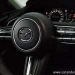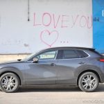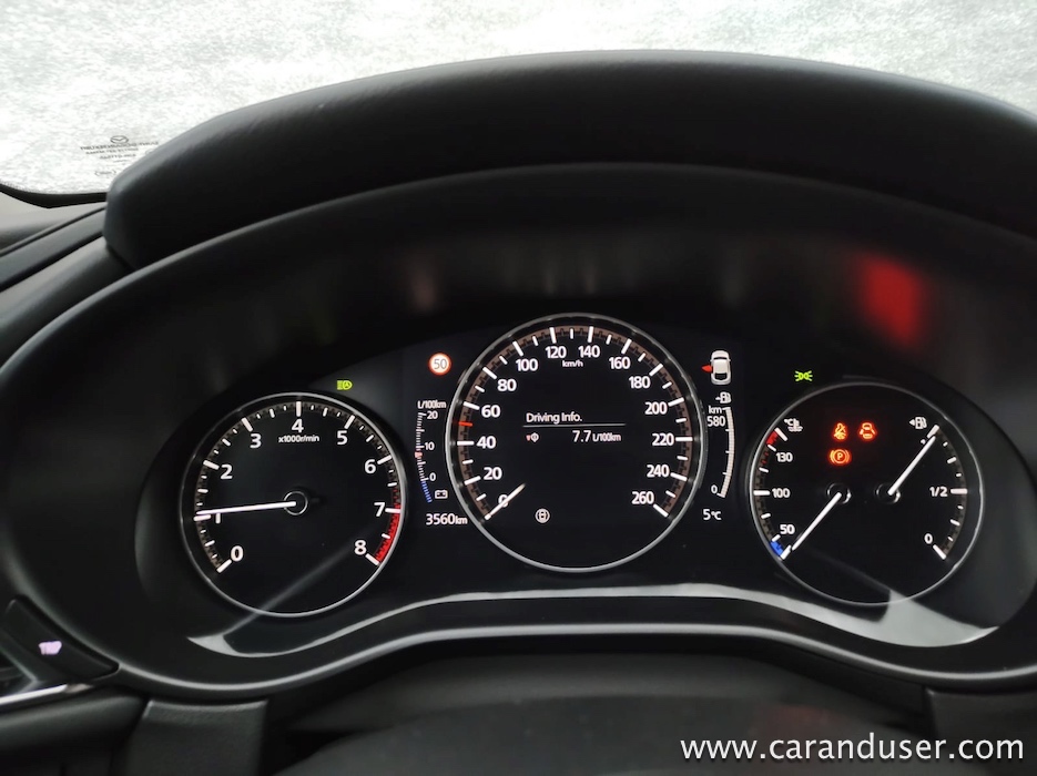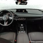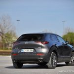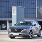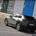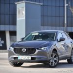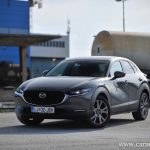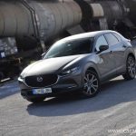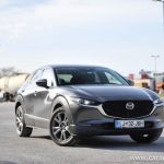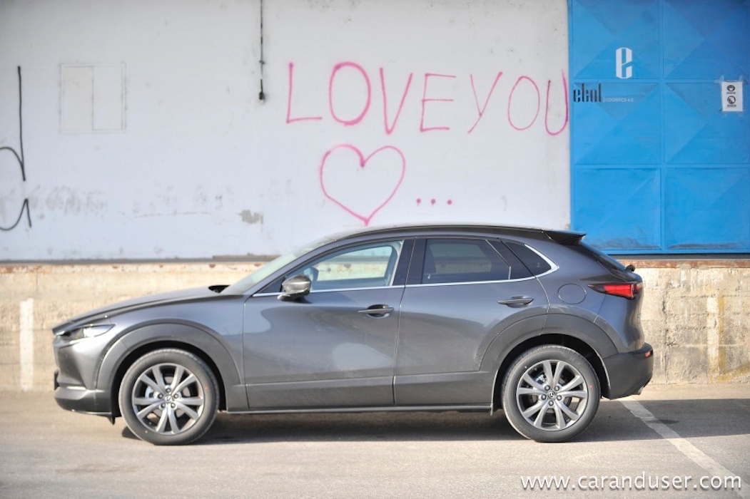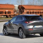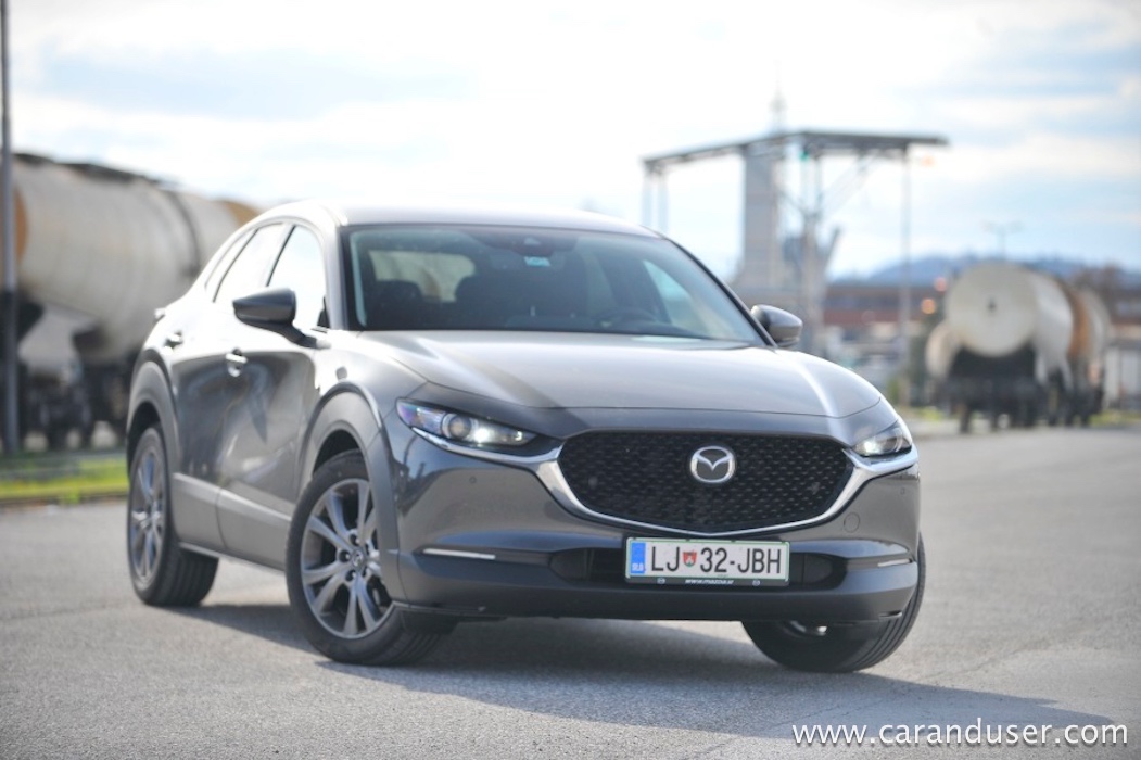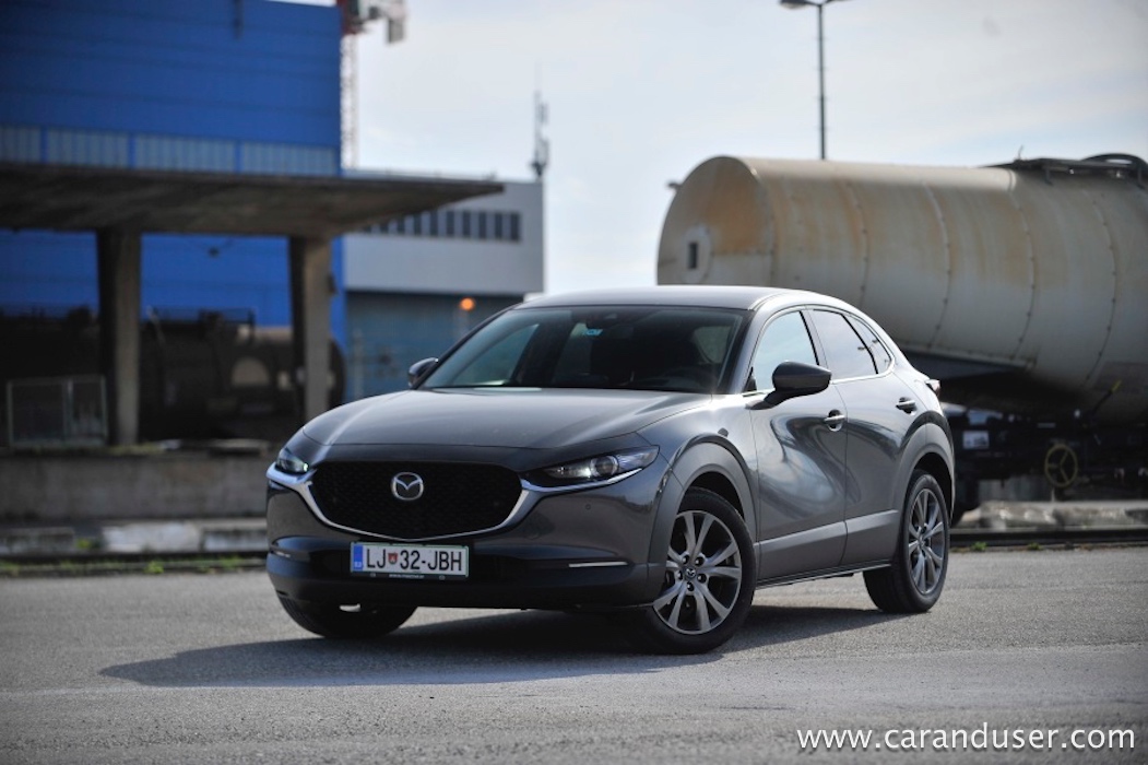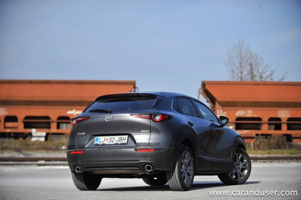 Pogon je ob že omenjenem tehnično začinjenem agregatu dodatno obogaten še s tehnologijo priključnega hibrida, ki je v praksi voznik ne občuti. Gre za sodobno kombinacijo, ki jo tvorita dvolitrski atmosferski agregat z nadzorovanim kompresijskim vžigom (kljub oktanski mešanici v valjih) in alternator-generator z mini baterijskim sklopom. Pretakanje energije lahko spremljate na osrednjem zaslonu, bolj kot poskočnost 186-glave konjenice pa pričakujte izredno tih in uglajen pohod po asfaltiranih poteh. Da bo veselje še večje poskrbi odličen ročni menjalnik s kratkimi in natančnimi hodi. Po drugi strani takšna zvrst pogona deluje lenobno, saj ni tiste brce v nizkih vrtljajih, ki jo navadno priskrbi prisilno polnjenje, zato pa pričakujte nekaj več pokončnih kocin ob visokih vrtljajih. Kljub bontonu se motor rad zavrti proti rdečemu polju in iz izpušnih cevi se sliši nekaj zamolkle simfonije, ki spominja na »dobre stare čase«. Povprečna poraba se vrti med šestimi in sedmimi litri in leze preko sedmice zgolj in le v urbanih naseljih, skok proti osmici pa se zgodi ob voznikovem nasmehu med hitrimi zavoji, katere CX-30 in njeno podvozje z lahkotnostjo odpravita. Zdi se, da videz in stabilnost vozila kar kličeta bo zajetnejši konjenici pod motornim pokrovom, ki pa je (žal) ne bosta dočakala.