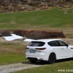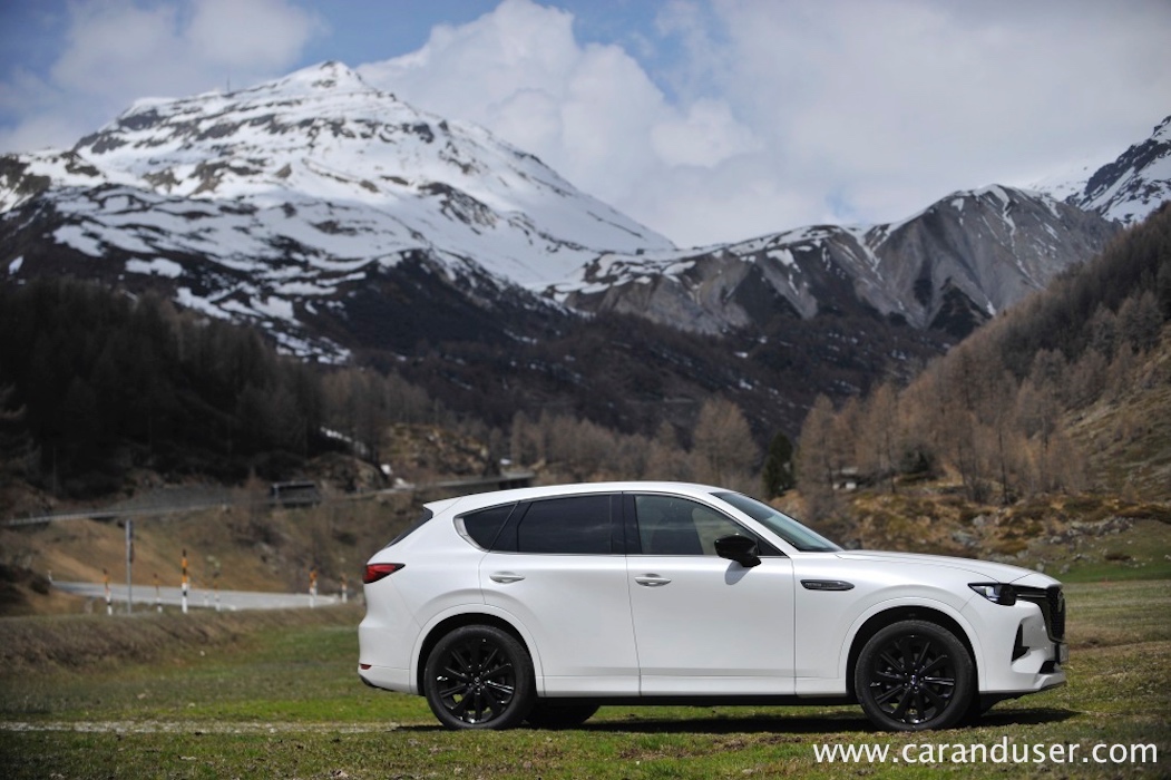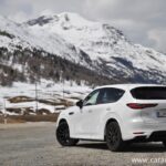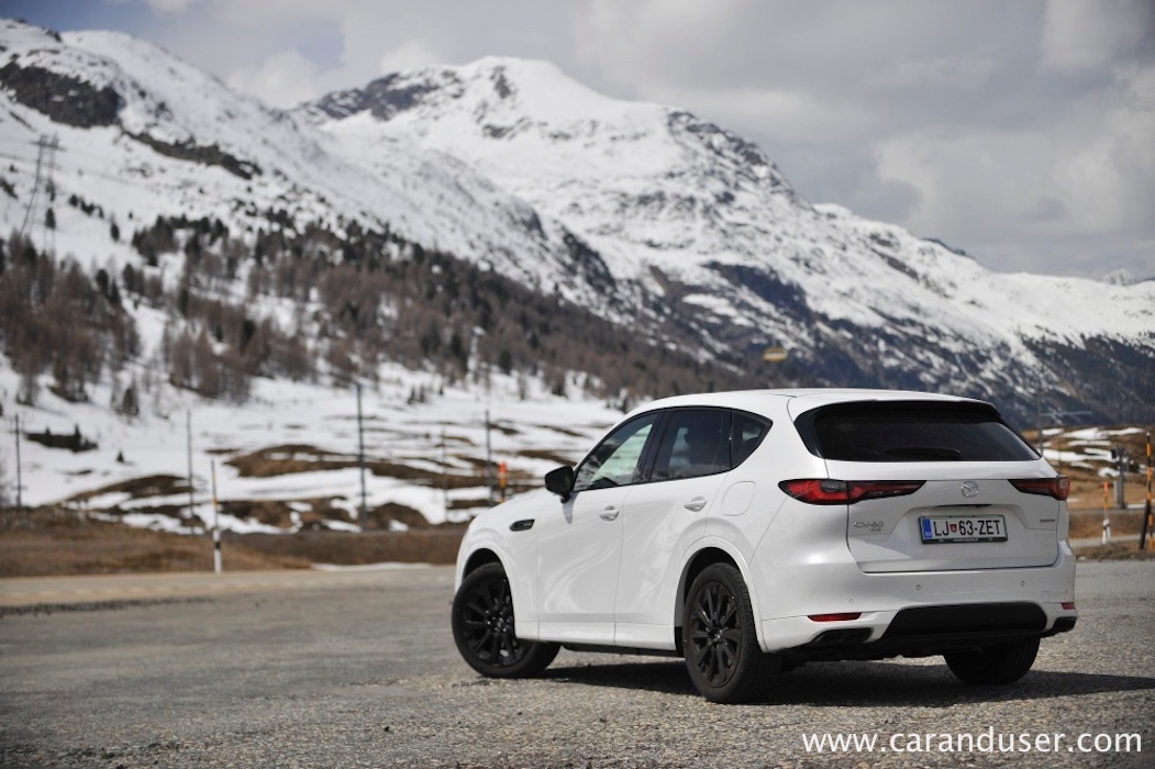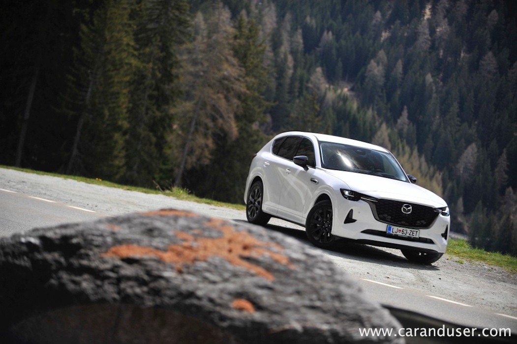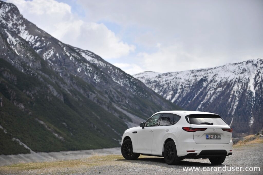 Po drugi strani je dizelska različica skoraj 100 kilogramov lažja od priključno-hibridne sestre. Svojih 254 vrancev Mazda CX-60 ne skriva in slednji zelo radi prikopitljajo na plano. Tudi 550 Nm navora pripomore, da so zasneženi vršaci ob panoramski vožnji, kaj kmalu postali le še izjemen spomin.