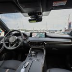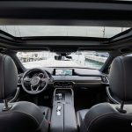 Sam, no, če sem povsem iskren – dejansko moj podmladek, 7-sedežnike najraje izkoristi za vabilo vseh sotrpinov iz šolskih klopi, da se skupaj z nami podajo na kak vikend potep po okoliških hribčkih, in seveda tudi tokrat ni bilo drugače. In kaj otroci najprej opazijo, ko se povzpnejo v japonsko mobilno sobo za druženje? Sedem sedežeeeeev! Panoramsko strešno oknoooo! Okej, kaj še? V kolikor je zunaj manj kot 10°C, moji prestolonaslednici nadvse radi hihitaje nakurita gretje njunih zadnjic, in testna MX-80 jima je to tudi omogočila. Pri uvozniku so nam namreč postregli s Homura Plus bogato opremo, ki ji domači japonski mojstri rečejo kar »športna eleganca« z več črnine in temnejšim ambientom. Gre torej za SUV z nekoliko bolj športnim značajem v družbi prestižne opreme. V praksi, poleg že omenjenega gretja sedežev druge vrste, to med izstopajočimi elementi pomeni še s črnim usnjem prevlečen ambient, prezračevane in ogrevane sedeže za kapitana in kopilota, LED svetila z matričnimi žarometi in polni obseg e-pomočnikov.