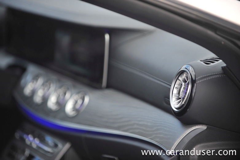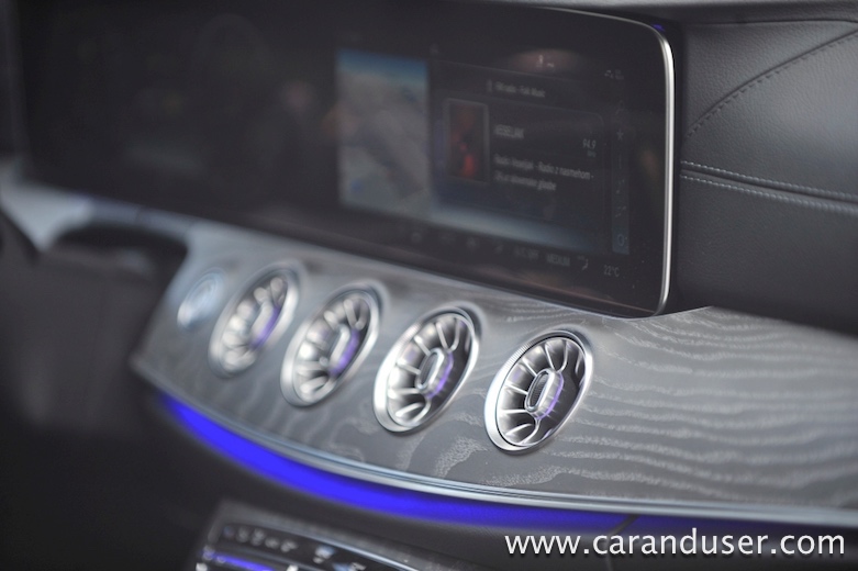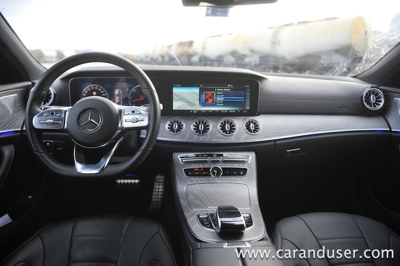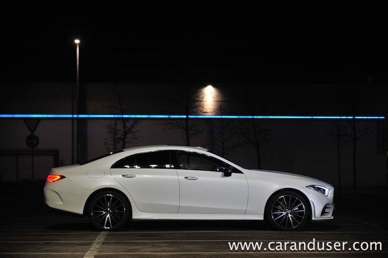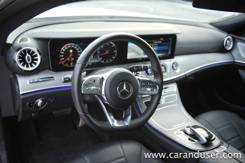 Testni CLS je bil opremljen tudi z doplačljivim aktivnim zračnim vzmetenjem, ki omogoča izbiro med različnimi voznimi načini, Comfort, Sport in Sport+. To pride prav predvsem zato, ker je avtomobil opremljen z 20-palčnimi platišči in nizkoprofilnimi pnevmatikami, ki vsekakor ne ponujajo veliko udobja. Odlično se počuti na daljših vožnjah kot je avtocesta, ponuja izredno veliko udobja, tudi samo krmiljenje je presenetljivo odzivno, a je zato v zavojih zaradi dolžine in kar velike mase manj okreten … čeravno izgled vozila deluje športno.