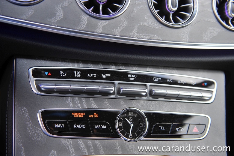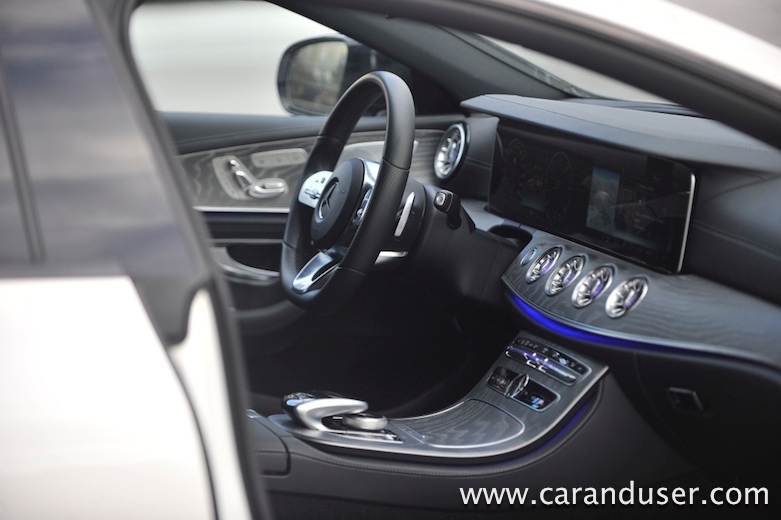 Za omejeno prostornost zadaj, se CLS odkupi z odličnim udobjem spredaj. Udobni usnjeni sedeži ponujajo ogromno možnosti, da lahko vsak najde svojo najudobnejšo nastavitev. Tudi sami materiali v avtu so izredno kakovostni, usnje in mehka plastika ter les, ustvarijo premium občutek, edino kar malce razočara, je poceni plastična površina okoli ventilacijskih odprtin za zadnje potnike. Zanimivo, da ima avtomobil v kabini precejšnje število odlagalnih prostorov, tako da se lahko dobro opremimo za daljša potovanja.