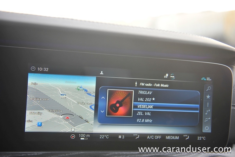 Široka izbira nastavitev in raznih aplikacij poskrbi, da nam v avtomobilu nikoli ni dolgčas. Pohvalno dober je tudi parkirni asistent s 360 stopinjskim pogledom okrog avtomobila, ki omogoča enostavno manevriranje, tako praktično ni več izgovorov za grdo parkiranje. Sistem omogoča tudi povezljivost z vsemi napravami, opremljen je tudi z internetno točko, preko katere lahko dostopamo do spleta, spremljamo vremensko napoved, navigaciji pa so dostopne realne trenutne razmere na cestah. Burmester 3D ozvočenje poskrbi za prijetno glasbeno izkušnjo, vendar nekako ni skladna z več kot 5.500 evri doplačila.