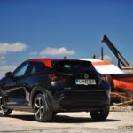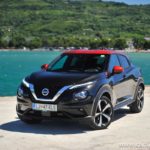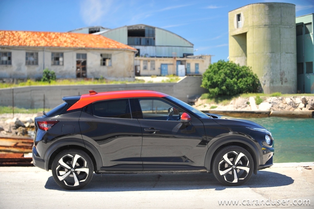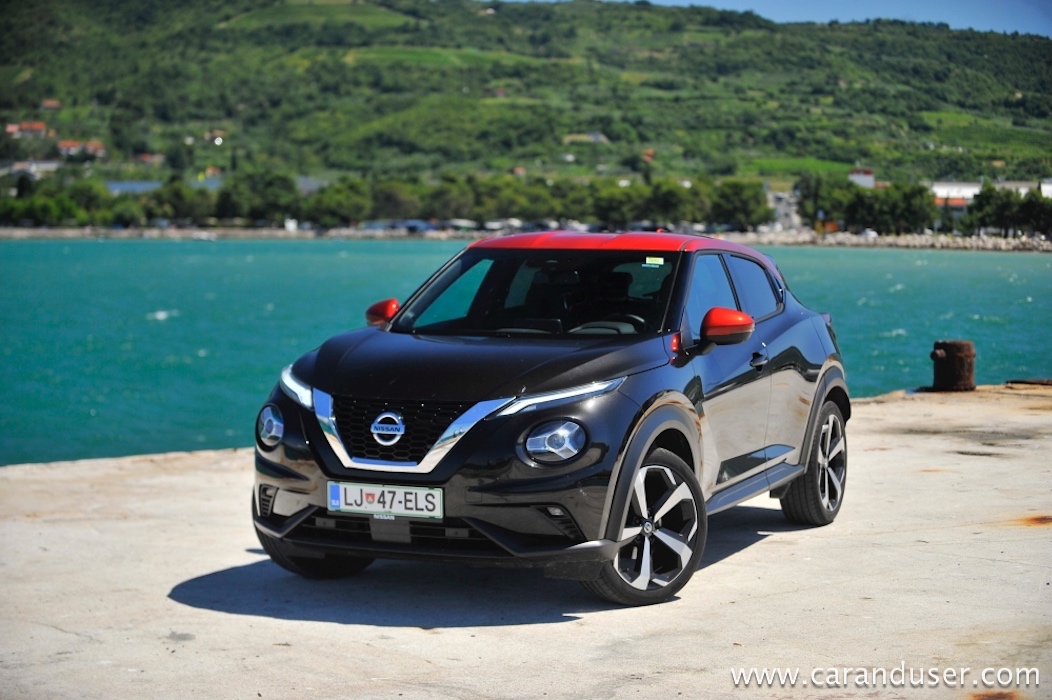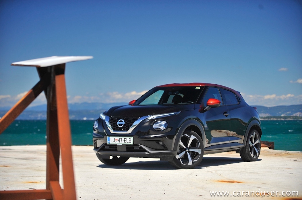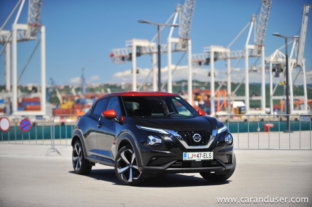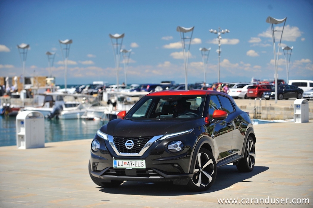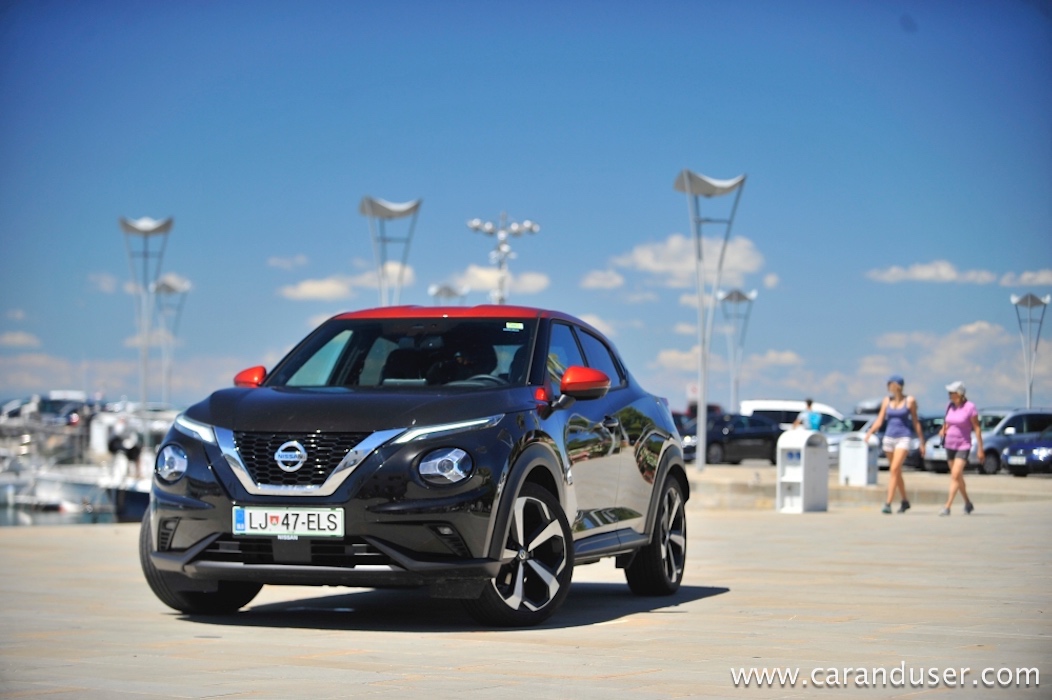 Nič drugače ni pri Juku, kjer je japonsko-francoski mini križanec odet v rahlo kupejevsko obliko, okitan s skoraj že agresivnimi elementi (odbijači, odprtine za zrak, zadnji spojler ipd.), češnjo na vrhu torte pa vsekakor tvorijo kar 19-palčna lita platišča. Bi še kaj pripomnili na takšno večerno toaleto? Verjetno ne, saj deluje uglajeno pravzaprav kjerkoli se pojavite, le asfalta se držite.