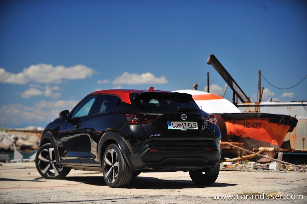 Če je Juke na kakšnem seznamu morda (pre)kratek, je to zagotovo ob pregledu motorne palete. Tam Nissan nekoliko osamljeno navaja le litrski trivaljni DIG-T bencinski agregat v zgolj eni močnostni različici s 117 »konjiči«. Ta je željan vrtenja proti višjim vrtljajem in ni ravno podhranjene sorte, vseeno pa bi si morda že zaradi oblike zaželeli nekaj malce bolj dinamičnega. Ker je bil testnežu dodan samodejni DCT menjalnik z dvema sklopkama smo pričakovali nekaj več udobja, predvsem ob mestni vožnji, ki ga žal nismo dočakali.