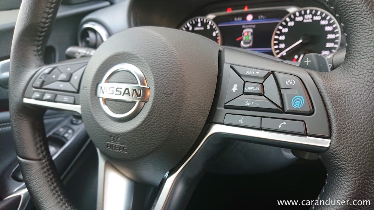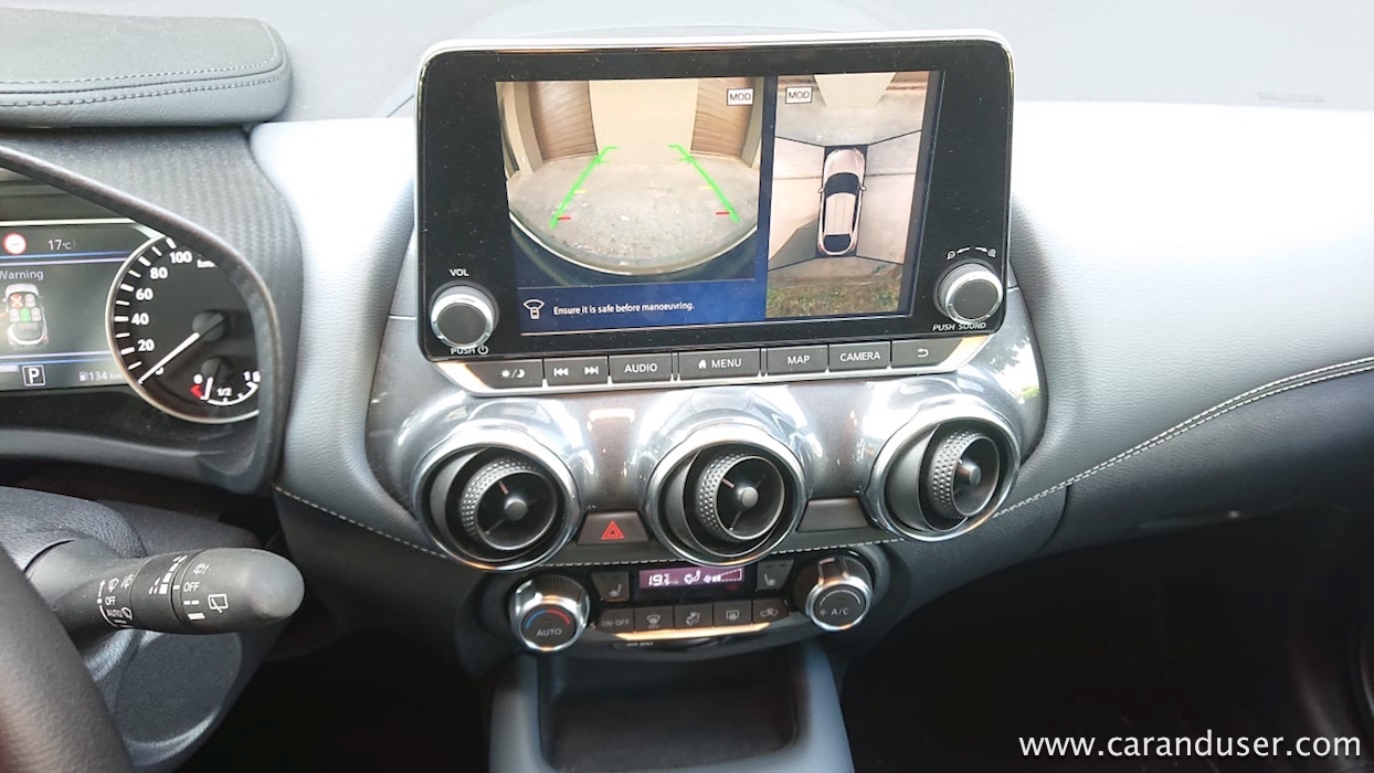 S hvalisanjem lahko nadaljujem tudi ob vstopu v Jukova nedrja. Tam je svoj dom vendarle našel posodobljen 8-palčni multimedijski zaslon, katerega »praočeta« sem še nedavno pri X-Trailu kritiziral. Deluje sodobno, prevetreno in nič kaj okorno, medtem ko na njem spremljate podatke navigacijske naprave ali morda 360-stopinjsko okolico vozila med počasnim mestnim manevriranjem. Dejansko je novi Juke izdatno opremljen z elektronskimi asistenčno-varnostnimi pomočniki, nekaj njih tudi pod imenom ProPILOT. Adaptivni tempomat v kombinaciji s sistemom za ohranjanje voznega pasu skrbi, da se boste udobno premikali tako med gnečo kot ob normalnih potovalnih hitrostih.