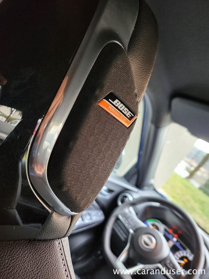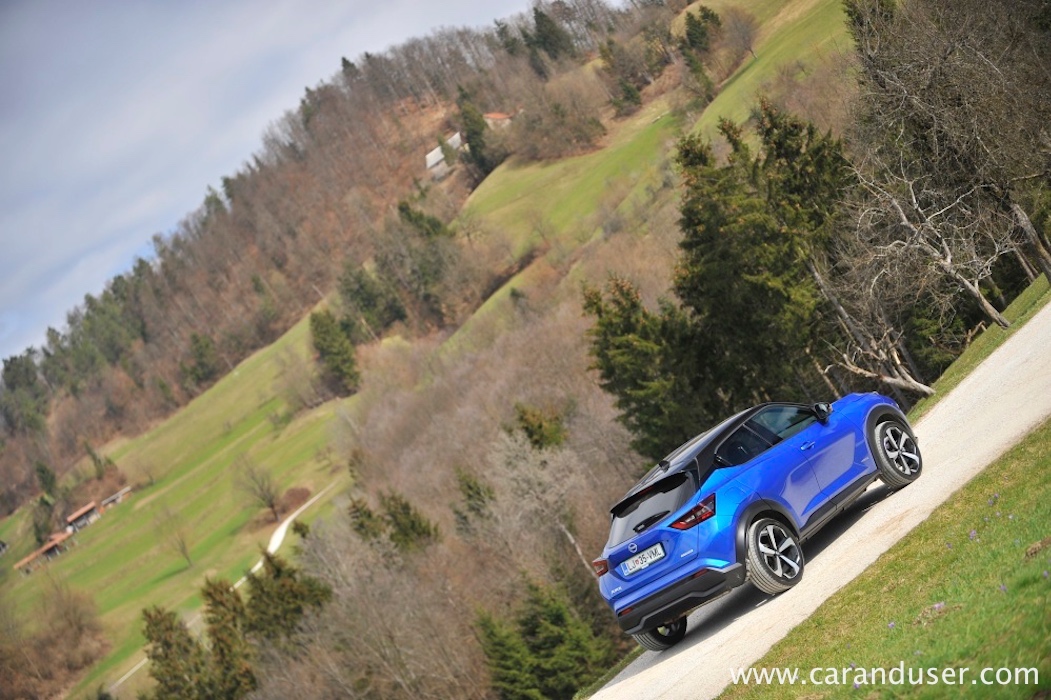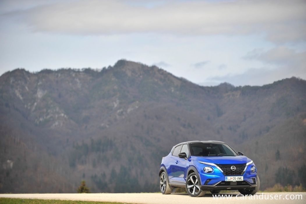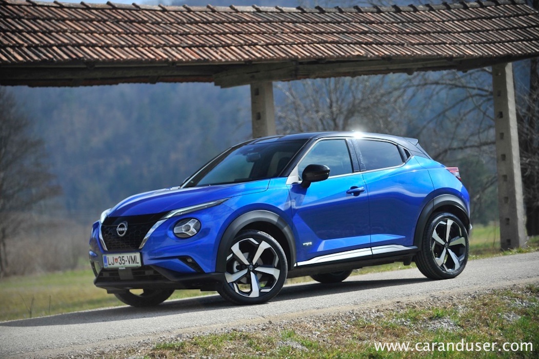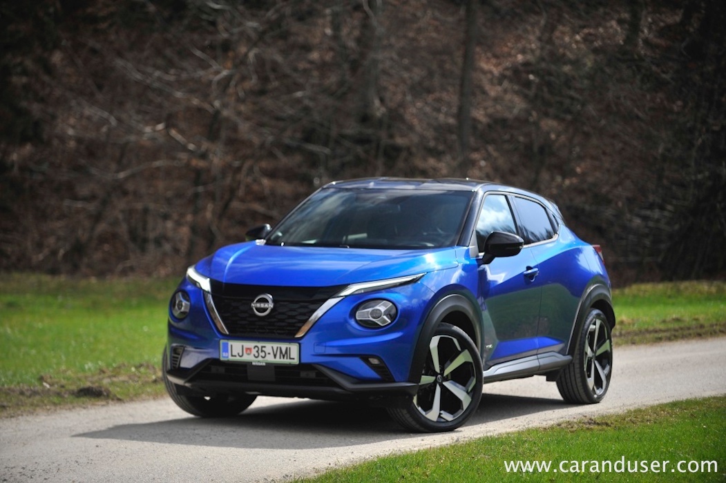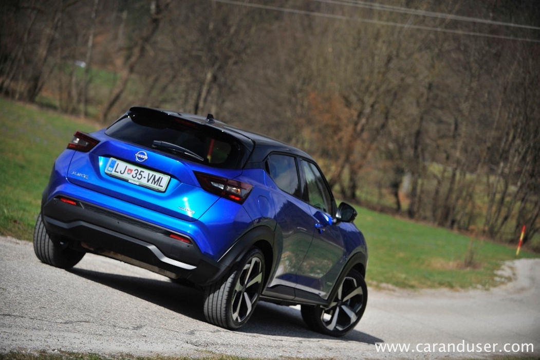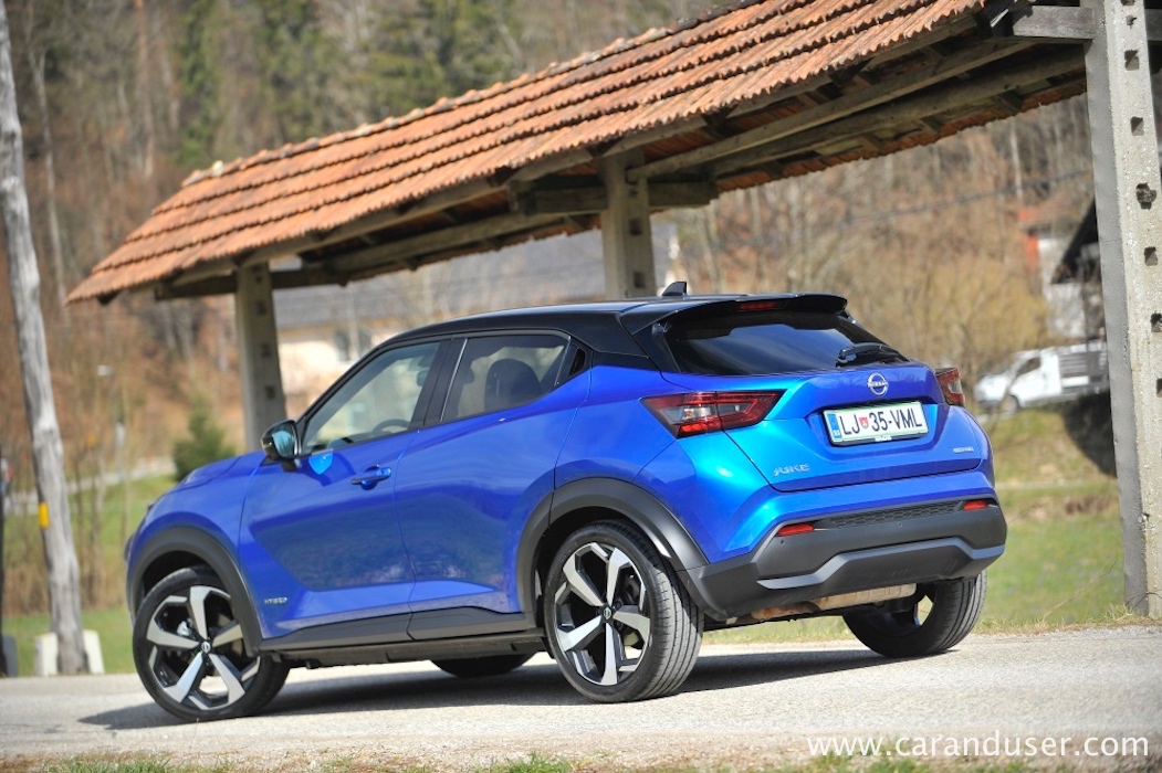 V splošnem Nissan Juke ostaja široko uporaben avtomobil. Sled hibridnega pogona je poleg emblemov s to oznako pridobil še posebna platišča, nov moder odtenek karoserijske barve in aktivna zakrilca v režah maske, ki poskrbijo za dovod hladilnega zraka ali za boljšo aerodinamiko, kadar je hlajenje zadostno. Ker je baterija nameščena v dno nahrbtnika se je ta opazno skrčil iz 422 na 354 litrov. Še vedno dovolj za 95 odstotkov poti, tudi tistih družinskih, kjer je podmladek prerasel vozičke. Testnež je bil polno opremljen s sklopom Tekna, ki smo mu pri uvozniku dodali le še novo modro karoserijsko barvo ob črni strehi in stebričkih, paket priročne zimske opreme Cold Tekna ter sistem ozvočenja Bose Personal Plus s prilagodljivo 360-stopinjsko audiofilsko izkušnjo, ki jo zagotovi 10 zvočnikov skupaj s tistimi vgrajenimi v sprednja vzglavnika. Doplačila niso zajetna, zato jih bo najverjetneje izbrala glavnina kupcev.