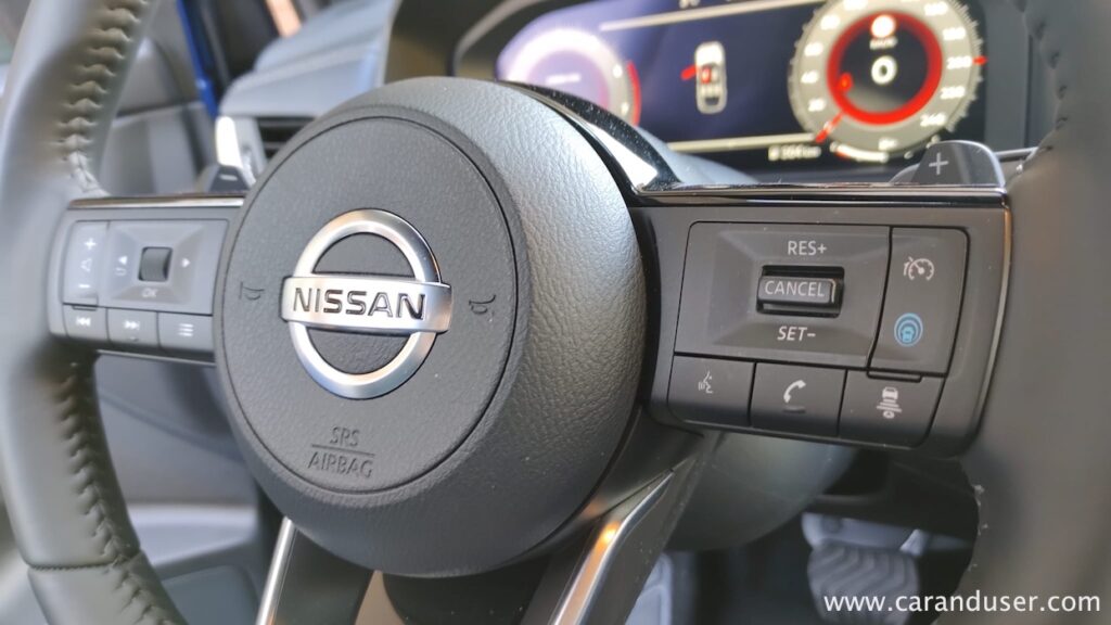 Informacije bo poveljnik Qashqaija bral z 12,3-palčnega instrumentacijskega zaslona, ki deluje prečiščeno in nevsiljivo – tako glede barvnega kontrasta kot s postavitvijo prednastavljenih podatkov. Multimedijski sistem NissanConnect, ki se prikazuje preko osrednjega zaslona z diagonalo devetih palcev, je ena redkih hib prenovljenega Japonca. Za skok med najboljše bi si Qashqai zaslužil nekaj malenkost bolj izpopolnjenega v programskem smislu, medtem ko po drugi strani nagovarja zanesenjake klasike s priročnim multifunkcijskim volanom ter tipkami za upravljanje radia in klimatske naprave. Uravnotežena mera digitalizacije torej, ki si pušča še nekaj prostora za napredovanje.