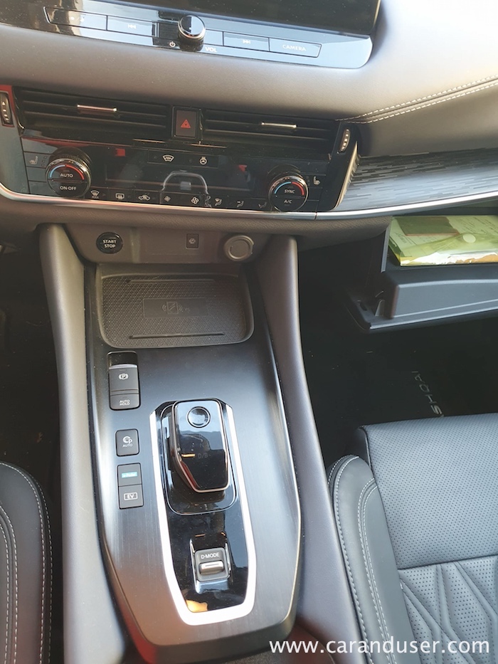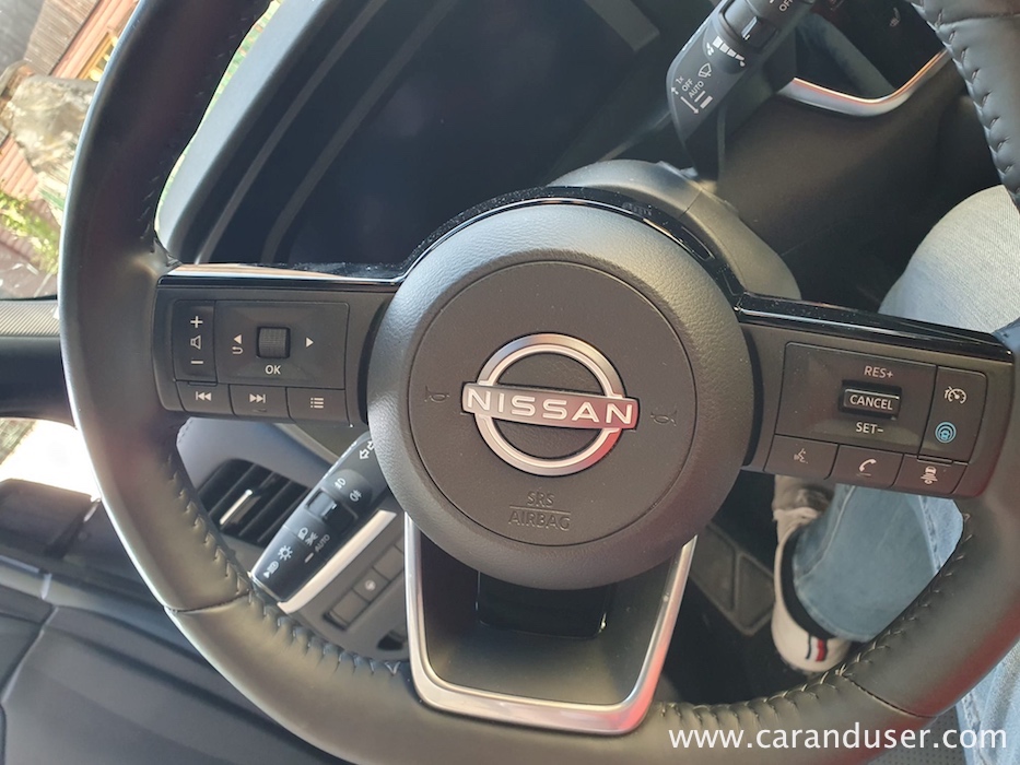 Domujete v mestu in ste si zgoraj opisani električni generator na kolesih zaželeli v lastni garaži? Prve pogovore glede Qashqaja e-POWER lahko pričnete šele z 39 tisočaki v žepu, saj je »osnovna« oprema pri tako gnanem samuraju sredinska N-Connecta. Pri uvozniku so v našo družbo oddali vozilo v stopnji višje in tik pod vrh umeščeni Tekna preobleki, za katero bi redko kdo upal napisati, da ji kaj manjka. Zgodbo pričnejo 19-palčna lita platišča skupaj z inteligentnimi LED žarometi in nadaljujejo projcirni Head-up zaslon, električno nastavljiv voznikov sedež in nenazadnje tudi ProPILOT Auto Park elektronski pomočnik. Oblazinjenje je kombinacija umetnega usnja in tkanine v temno modri barvi, poleg dveh večjih digitalnih zaslonov pa so pragmatični Japonci ohranili nekaj osnovnih tipk za intuitivno upravljanje s klimatizacijo recimo.