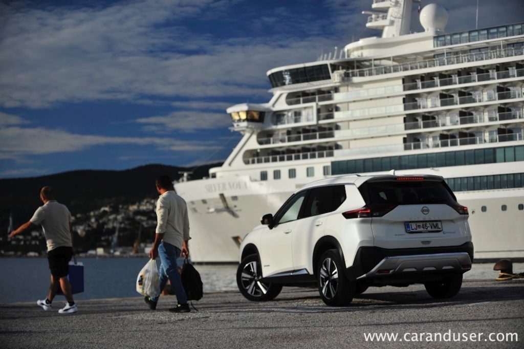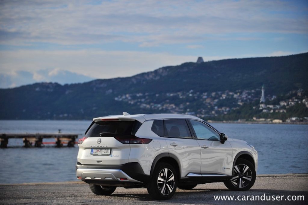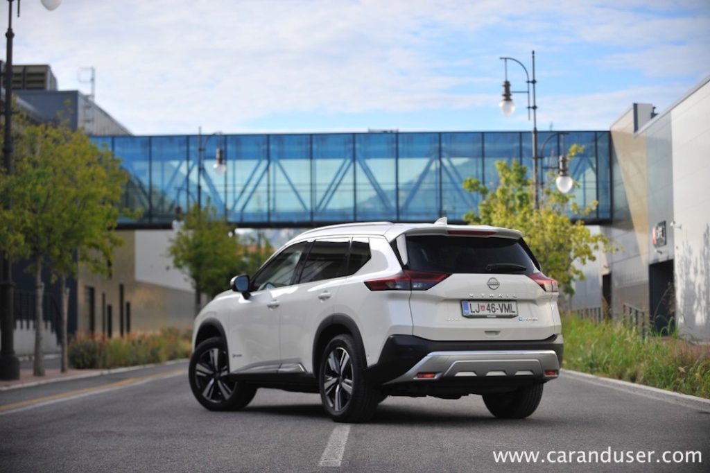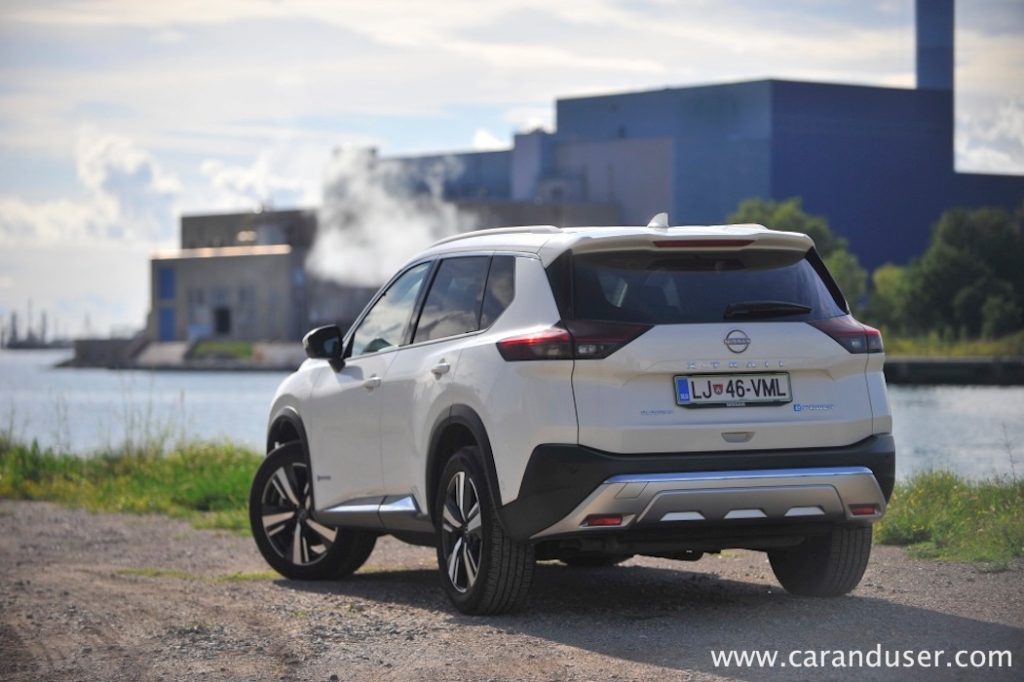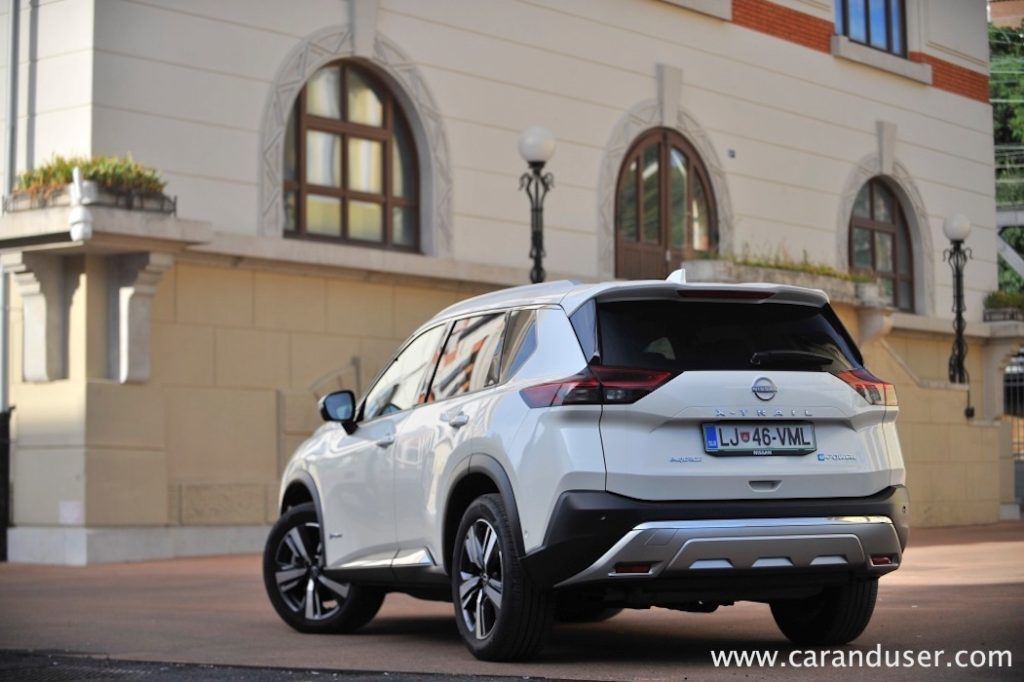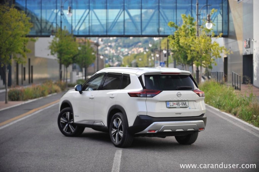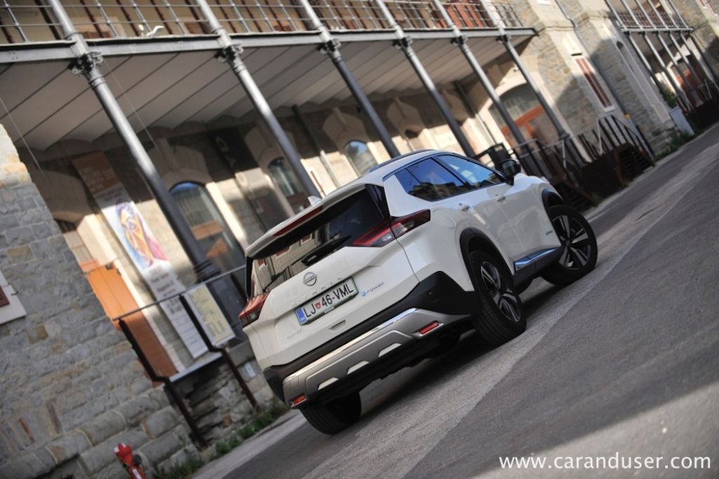 Vrnimo se k bistvu našega testneža – električno-bencinskemu dvojcu. Za generacijo električne energije je zadolžen 1,5-litrski trivaljnik s 116 kW (158 KM), ki glede na hitrost vozila polni relativno skromno litij-ionsko baterijo z neto kapaciteto 1,7 kWh. Ta omogoči neslišno speljevanje z mesta ali kratko manevriranjem ob parkiranju recimo, kmalu zatem pa elektronika vklopi agregat za dolivanje elektrike. Slednjo zaradi štirikolesnega e-4ORCE pogona srkata dva e-motorja, vsak na svoji osi. Njuna skupna moč znaša 157 kW (213 kW) ter uporabnih 525 Nm navora in čeprav jima zmogljivosti nikakor ne očitam, sta prednostno namenjena samozavestni vožnji v dežju in snegu kot recimo pohajkovanju po neutrjenem terenu.