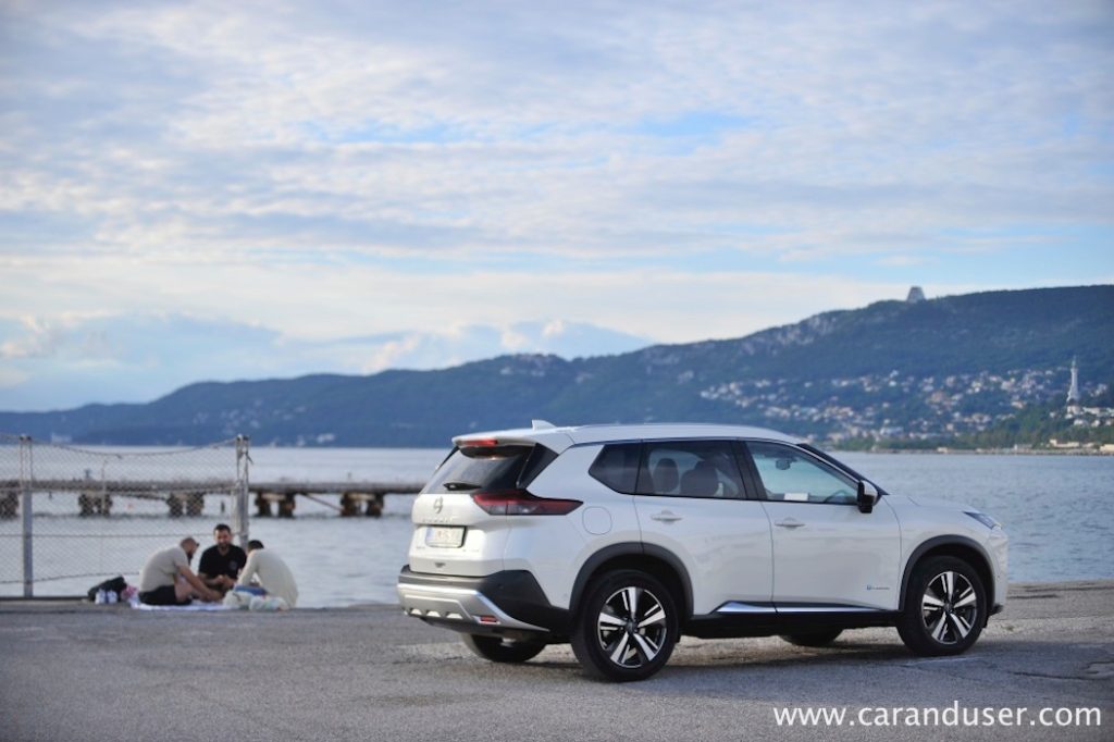 X-Trail bi tja seveda zlahka prilezel, vendar na račun tveganja, da si »umaže« lakaste 19-palčne čeveljce, čeprav sem na spletu opazil kar nekaj dokaznega gradiva, da se X-Trail z e-4ORCE pogonom vendarle ne boji resnejših terenskih preizkusov in blata. Le dober tlačni čistilec si nabavite in dovolj širok odtok v meteorni jašek, da se bo umazanija sprala tudi z vašega dvorišča. Za zaključek zato z vseljem dodam, da X-Trail kljub elektrifikaciji in evoluciji v bolj fine kroge, k sreči še vedno ohranja svojo terensko bit.