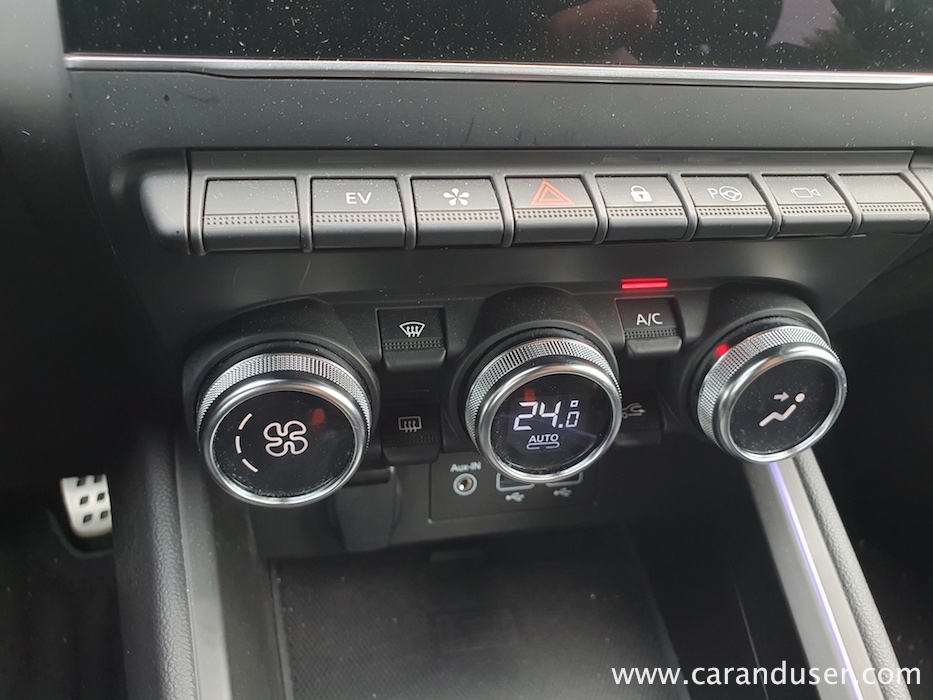 Zlati dodatki na armaturki, sedežih in volanu delujejo prepričljivo. Dobro dopolnijo delno digitaliziran prostor, kjer svoje mesto najdejo tako ekran občutljiv na dotik kot tipke in vrtljivi gumbi. Lični dodatki skupaj z oblazinjenjem iz umetnega usnja celotno degustacijo vozila povzdignejo nivo višje, korak in ped bližje premijcem v tem segmentu, čeprav je Clio v prvi vrsti avtomobil za rajo. Pod črto lahko torej zapišem, da je E-Tech Engineered nekakšna estetska večerna toaleta v garderobi še nekaj dni aktualnega Clia.