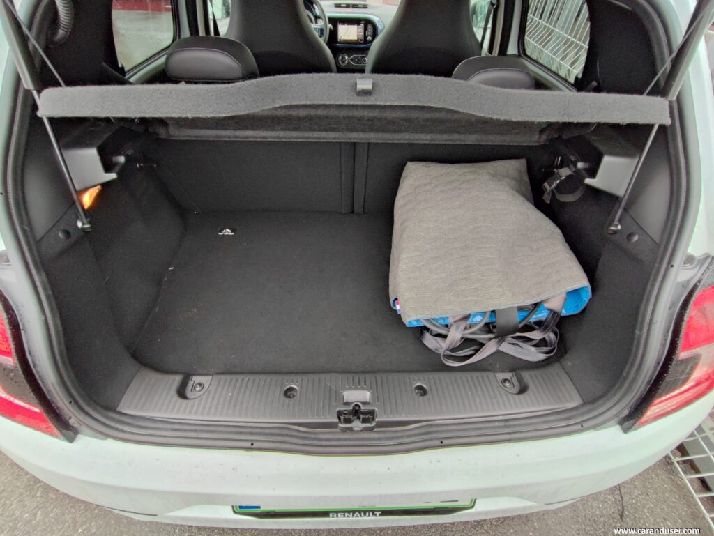 Francozi se niso kaj prida potrudili, da bi E-Tech različici modela Twingo namenili več osebnosti. Ločimo ga le po nekaj okrasnih črtah, modrih plastičnih okrasnih elementih na sprednji maski in logotipih Z.E., kar pomeni »Zero Emission.« To glede na potrebno električno energijo in način njenega pridobivanja seveda povsem ne drži. Ohranili so tudi dovod zraka na levem boku, čeprav je zaradi nepotrebnega hlajenja motorja z notranjim izgorevanjem, njegova funkcija pošla. Kljub štirim vratom, Twingo ne navdahne z veliko prostora in ostaja kot drugi avtomobil pri hiši ali prvi, če seveda redko kdaj zapustite mestno okolje. V prtljažnik lahko brez težav spravite tedenske nakupe, tudi kakšno večjo kramo ob podrti zadnji klopi.