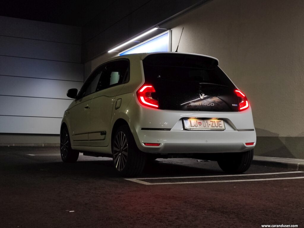 Twinga vzljubite med vožnjo, saj je za električno gnan avtomobil resnično lahek, tehta le 1,1 tone, in temu primero se tudi pelje. 60 kW (82 KM) in 160 Nm takojšnjega navora je dovolj, da na semaforju osmeši marsikatero večjo mrcino, hkrati je zaradi zadnjega pogona mali Francoz zelo igriv, nepotrebno vihtenje volana pri manevriranju pa bo nepotrebno, namreč zaradi nemotenih sprednji koles, obračalni krog znaša zgolj 8,6 metra. Tudi pri višjih hitrostih avtocest se ne boste počutili kot ukleščeni v pločevinasti konzervi, saj se pelje zelo stabilno, z najvišjo hitrostjo 135 km/h pa ne bo skrbi o preseganju omejitev.
