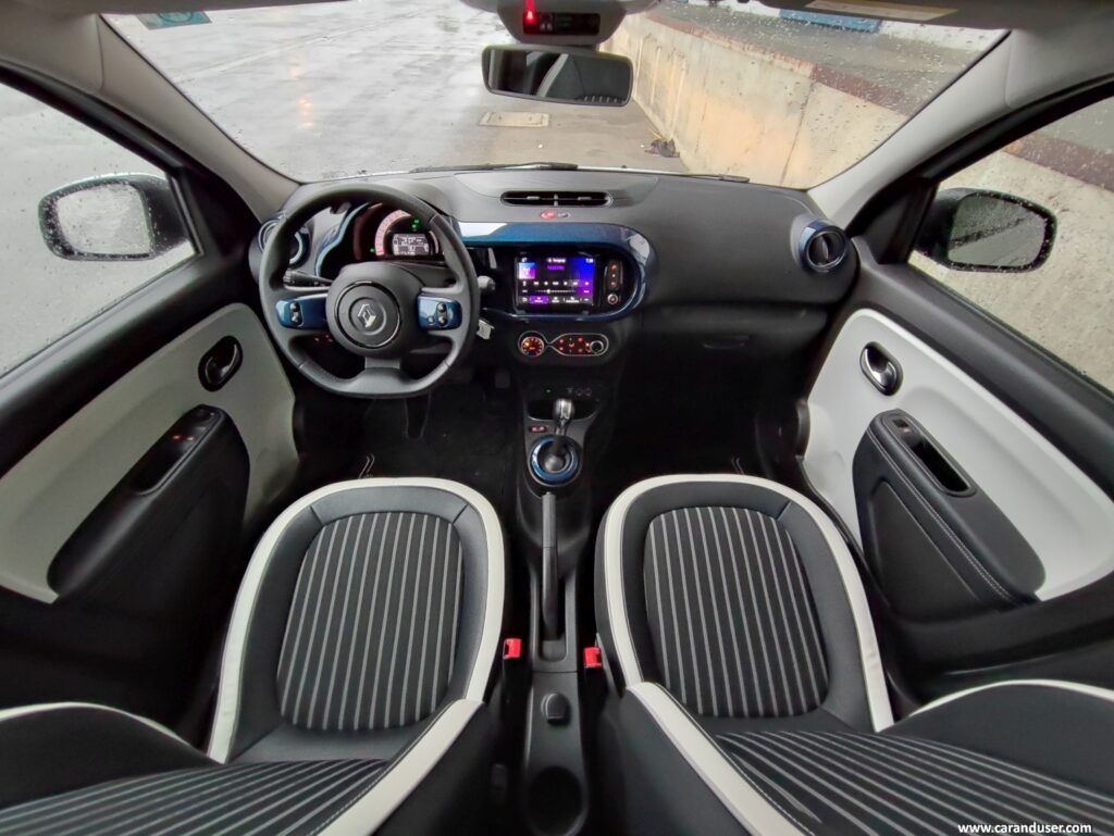 V končni fazi je Twingo kot popolna nakupovalna torba za vsakodnevna opravila, zato razkošja seveda ni. Voznikovo okolje z analognimi merilniki in manjšim zaslončkom je preprosto, prostora je razmeroma malo, čeprav se lahko štirica nižje rastočih potnikov pelje povsem udobno, sredino armaturne plošče zastopa informacijsko sistem z zaslonom na dotik, ki nudi tako podporo Apple CarPlay, kot Android Auto. Seveda so električni Fiat 500e, Honda-e ali Mazda MX-30 privlačnejši, udobnejši in običajno pripeljejo dlje, vendar so tudi precej dražji, kar redko odtehtajo.