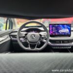 Pozitivno presenečen sem bil tudi ob odprtju Enyaqovih duri, saj so Čehi odšli na »benchmark*« v Skandinavijo in v konfiguratorju dotičnega električarja ne nudijo klasičnih stopenj opreme, temveč nekoliko bolj prefinjene oblikovalske žanre s poimenovanjem LOFT, LOUNGE, ecoSUITE, SUITE in nenazadnje še LODGE. Naš testnež je nedrja prepustil usnju in dekorativnim elementom iz klavirske črne barve kot veleva SUITE paket. Čedna reč, kot tudi dejstvo, da so Čehi z odliko zasnovali interakcijo voznika z nadzornimi funkcijami vozila. Ohranili so nekaj esencialnih tipk, namesto drsnikov so na volan namestili vrtljive gumbe ter na sredino armaturne plošče posadili velik 13-palčni multimedijski zaslon, medtem ko so vozniku namenili manjši 5,3-palčni ekran z osnovnim naborom informacij. Precej njih se namreč projicira na vetrobransko steklo. Vključujoč recimo zanimive barvne informacije o zaznavanju vozil, ko vozite z aktivnim prilagodljivim tempomatom. Ta namreč obarva (ne)ustrezno oddaljenost od vozil pred vami in nasploh deluje izredno dobro.