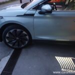 Enyaq je zastavljen po najsodobnejših Škodinih smernicah, ki vsebujejo precej ostrih in odsekanih linij, vendar na všečen način, brez dramatiziranja. Dolg kot družinski »sedem-zicer« SUV Kodiaq, a opazno nižji. Namenoma seveda, »autobahn« električarje pije kot krilati krvosesi svoje žrtve na višku soparnega poletja, zato je količnik zračnega upora vsled nižjeraslega Enyaqa prav tako nižji. Ok, torej imamo relativno nizkega družinskega križanca? Drži. Kot tudi dejstvo, da so ga pri uvozniku na druženje poslali s svojimi najbolj elegantnimi 21-palčnimi dvobarvnimi Supernova čeveljci. Navkljub nizkemu preseku pnevmatik udobje med vožnjo ni prav nič trpelo, zato po mojem mnenju skoraj zagotovo sodijo na seznam »must have« doplačil.
