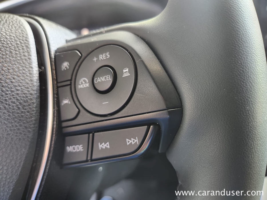 Da bodo tja dospeli varno v praktično vseh razmerah bo poskrbel hibridni štirikolesni pogon naše testnice, ki služi predvsem kot podaljšek varnosti in ne omogoča resnejših terenskih podvigov. Tvorijo ga dvolitrski uživalec oktanov s 112 kW in dva e-motorja. Prvi s 83 kW dela družbo bencinarju na prvi osi, medtem ko drugi zmore le 31 kW in zgolj občasno dopolnjuje prvo dvojico ter posledično ne vpliva na sistemsko zmogljivost, ki znaša 145 kW oziroma bolj domačih 197 KM. Skoraj dvesto »konjev« v družinskem SUV-ju? To je že resno spogledovanje s športniki spodnjega srednjega razreda. Nikakor, Toyotin hibridni pogon je sicer dovolj uren za samozavestna prehitevanja, vendar mu dinamika ni povsem pogodu. Bistveno raje skoraj nezaznavno preklaplja med bencinom in elektriko ter na ta račun za dimenzijsko nič kaj skromen športni terenec pogoltnost zbije na povprečnih 5,2 litra. V primeru pretežno mestne vožnje in racionalnega predvidevanja prometa je lahko rezultat še za dodaten liter nižji. Upravljanje energije oziroma »energy management«, če ne skoparim z angleškimi izrazi, je na nivoju pogonsko sofisticirane Toyote RAV4 PHEV, kateri odo na to temo sem spisal na povezavi TUKAJ. In čemu torej še e-motor na zadnji osi? Ta poskrbi, da bo zadek sledil nosu tudi med odločnejšimi pospeševanji, predvsem pa bo zagotavljal še boljšo stabilnost vozila na spolzki podlagi. Ker mora biti podvozje kos vsej tej konjenici, je avtomobil tudi med hitrejšimi zavoji presenetljivo miren, zato čeprav skromen navor na zadnjem kolesnem paru zagotovo ne bo odveč.