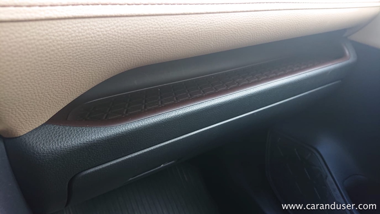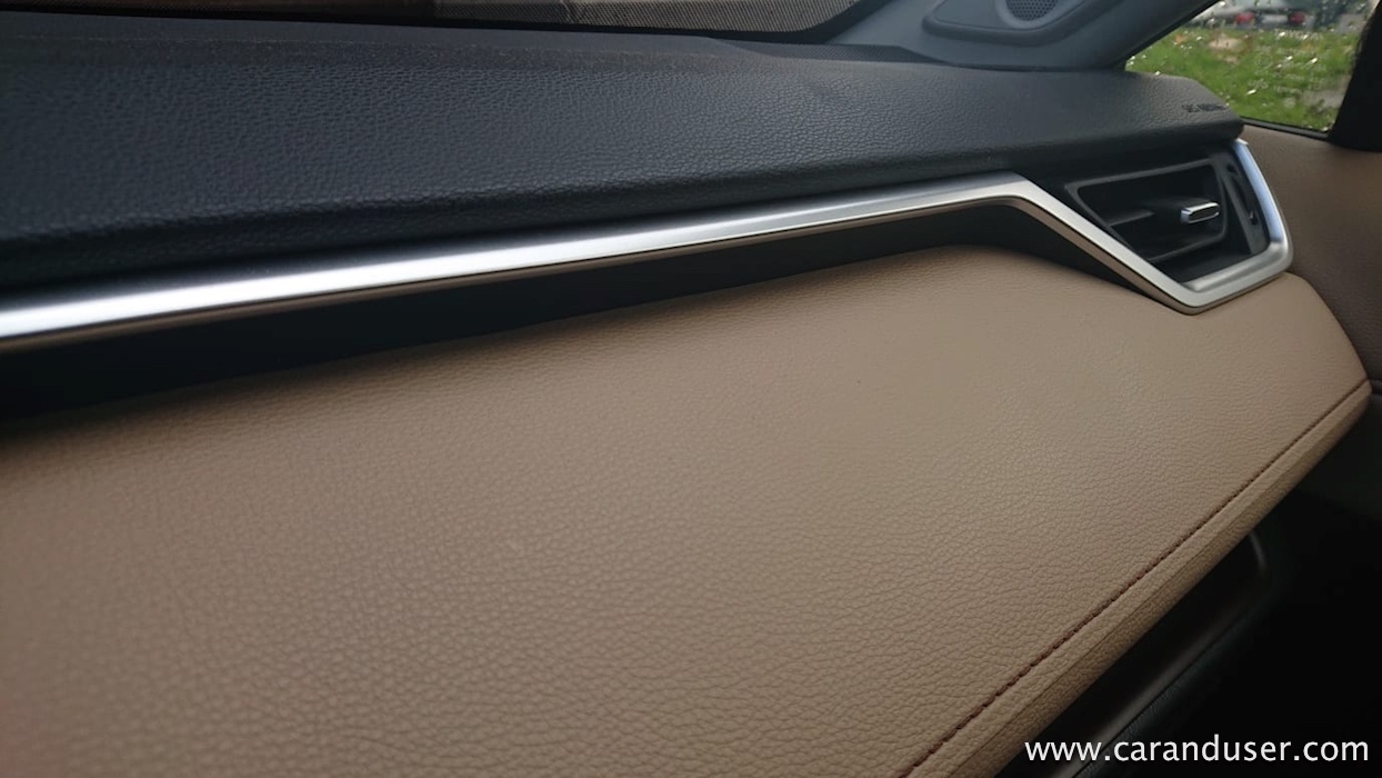 Kje začeti pri naštevanju polne omare dodatne opreme? Morda pri usnjenem oblazinjenju in nadalje pri ogrevanih ter hlajenih in hkrati električno pomičnih sprednjih sedežih, panoramski pomični strehi, JBL ozvočenju in »pušeljcu« elektronskih asistentov, ki budno spremljajo vsak vaš meter na cesti. Tudi med parkiranjem, kjer so vam v pomoč kar štiri kamere. Slednje se vklopijo vedno, kadar hitrost vozila znaša manj kot 10 km/h.
