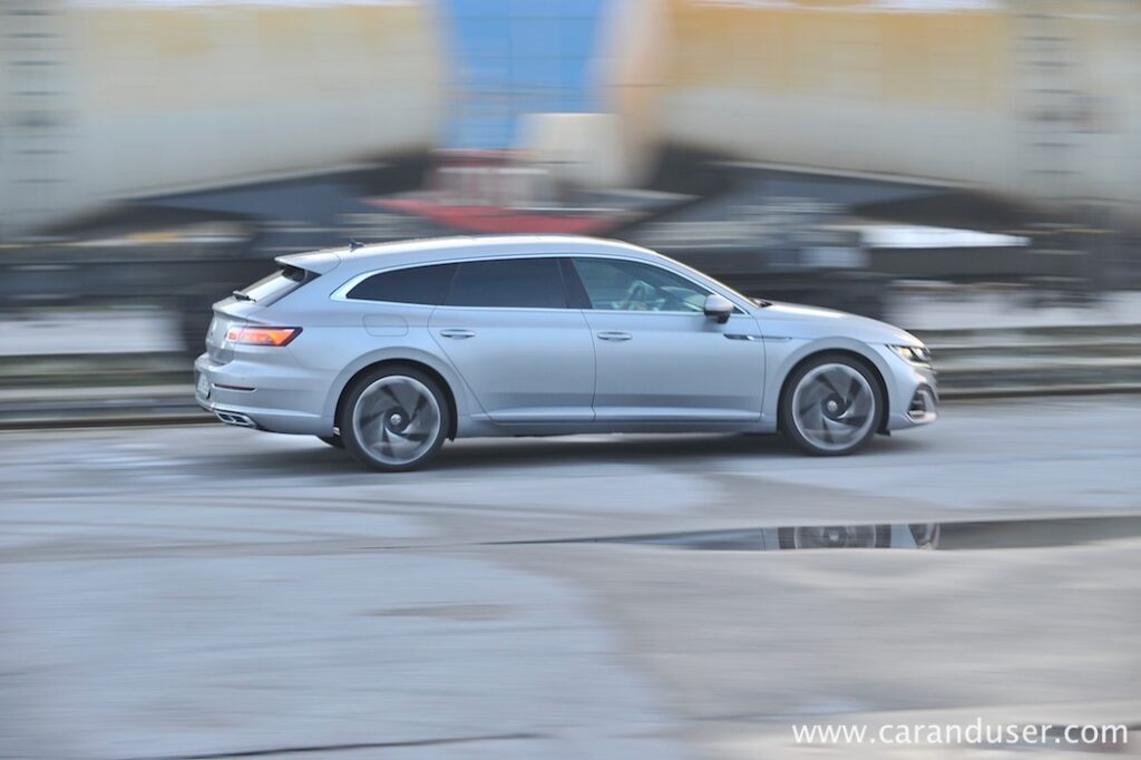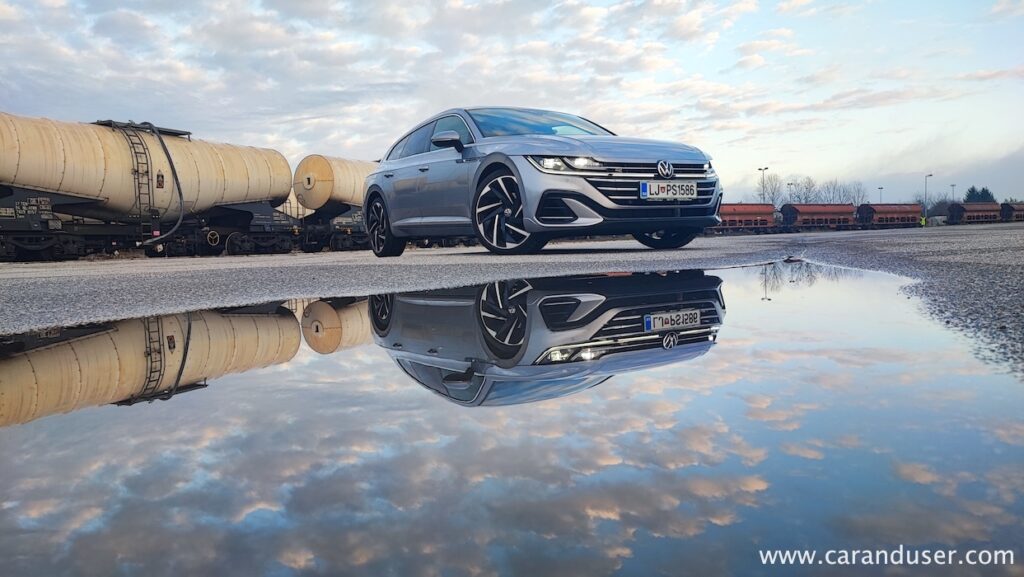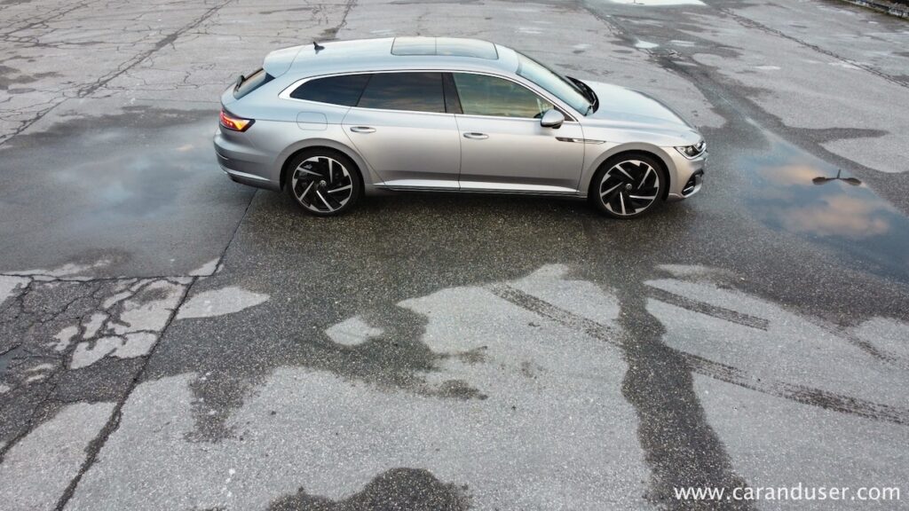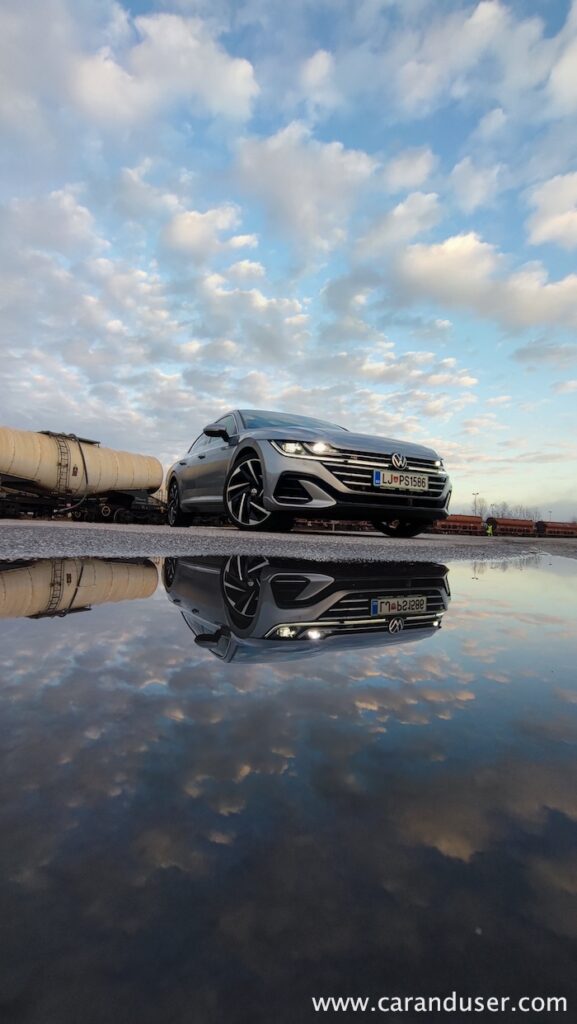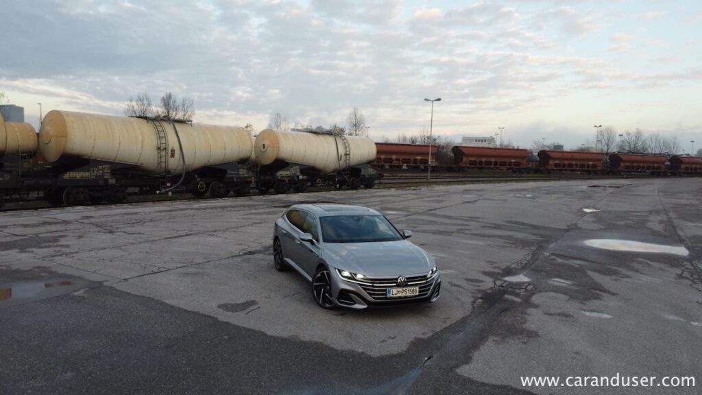 Manj hladni smo ostali pri vožnji in pogonu. Za konjenico je skrbel dvolitrski turbodizel z okroglimi 200 KM in 400 Nm navora, ki v družbi sedemstopenjskega DSG menjalnika skrbi za pravcato cestno eleganco. Dvojica, ki poganja vsa štiri kolesa, namreč tvori eno izmed bolj uglednih simbioz na avtomobilskem tržišču in je etalon sodobne dizelske prefinjenosti. Dovolj prožna za degustacijo zametkov športnosti a po drugi strani hitro spremenljiva v krotkega sajavčka, ki ne razočara niti zapriseženih ljubiteljev bencinarjev. Električnih entuziastov pač ne prepriča prav nič kar proizvaja emisije. Morda le razdalja, saj ob polnem 66-litrskem zalogovniku in povprečni porabi 6,3 litra na stotico zlahka prevozite več kot dvakrat dlje od električarjev, v njih idealnih mestnih razmerah, medtem ko je vodljivost Arteona SB na bistveno višjem nivoju kot recimo pri njegovih ID električnih sorodnikih.