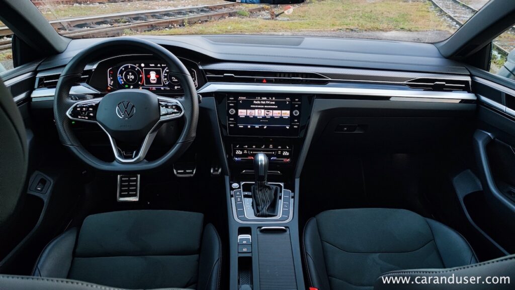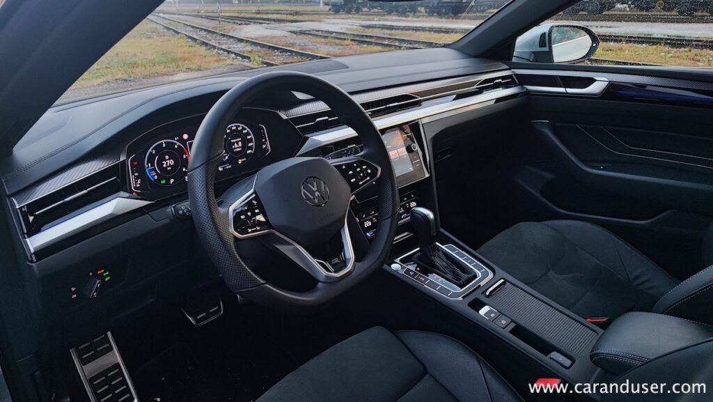 Vozilo ohranja svojo nizko in široko prezenco, zato je položaj za volanom še vedno bolj športen in popolno nasprotje visokemu razgledišču iz Volkswagnovih športnih terencev. Med manj prijetna dejstva bi lahko uvrstili pogled vstran in nazaj, saj so zadnja bočna stekla zavoljo kupejevske linije skromno odmerjena.