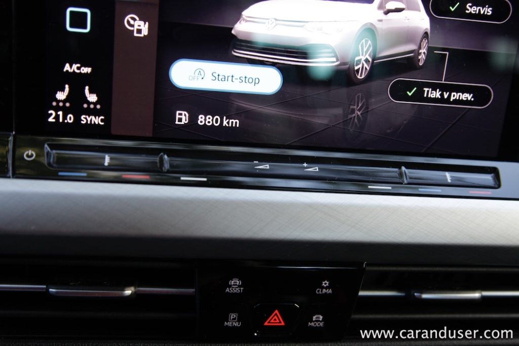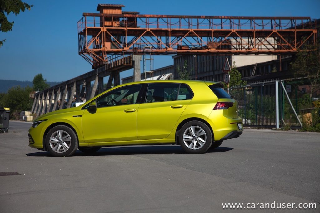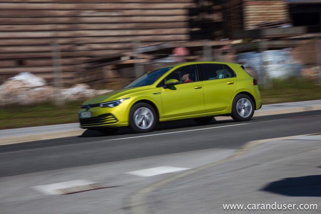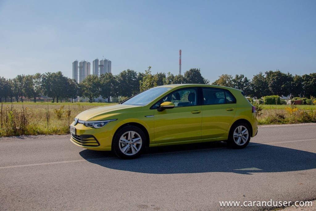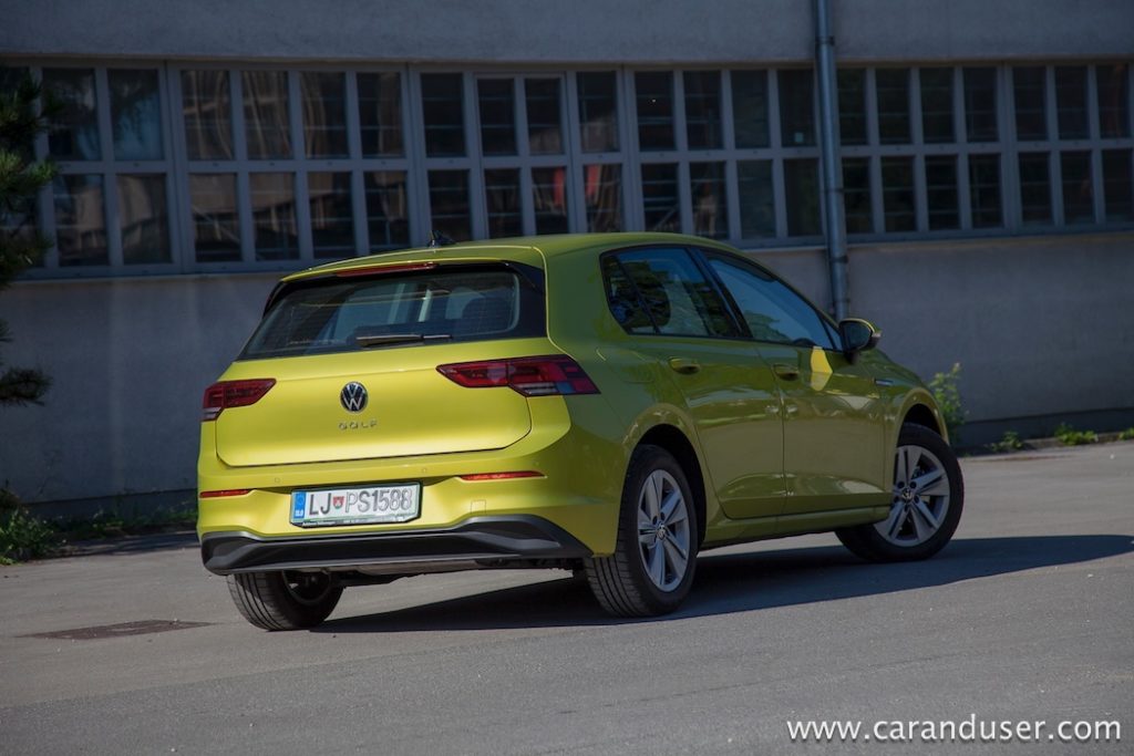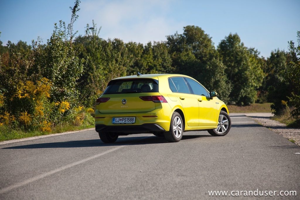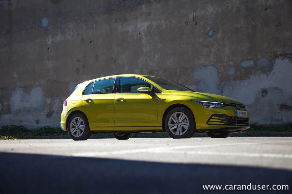 »Prepoznaven, a s potlačeno masko za odtenek preveč drugačen«. Morda je »obraz« novega Golfa prvič malce preveč samosvoj, vseeno pa se preobleke osme generacije dokaj hitro privadite. Zadek je povzet po T-Rocu in vsaj ta posledično deluje domačno. Opremljenost testneža je vključevala osvetlitev vratnih kljuk in prostora pred vstopnimi vrati, da boste imeli varen korak preden stopite v notranjost.