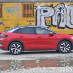 Otvorimo seciranje s prvim »ošvrkom«, ki nekaterim prinese tudi ljubezen na prvi pogled. Kupejevski zadek, ki je pravzaprav edina zunanja diferenca v primerjavi z ID.4, doprinese nekaj več dinamike k podobi tega, zaenkrat najdražjega, električarja iz VW salona. Tisti spojler na zadnjici začini prezenco ravno dovolj, da bo zagotovo prepričal kar nekaj ljubiteljev kupejevskih SUV-jev. V primeru izbire najbogatejše GTX različice naj bi v domačo garažo zapeljali električni GTI ekvivalent, zatorej bom našemu Pro Performance oblačilom rekel kar »e-R-Line« komplet. Vsaj spredaj tako deluje, medtem ko s plastiko obdani koloteki in spodnji del zadka spominjajo na Alltrack različice – torej tiste nekoliko bolj robustne karavanske izvedenke Golfa in Passata.