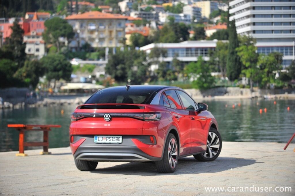 Otvorimo seciranje s prvim »ošvrkom«, ki nekaterim prinese tudi ljubezen na prvi pogled. Kupejevski zadek, ki je pravzaprav edina zunanja diferenca v primerjavi z ID.4, doprinese nekaj več dinamike k podobi tega, zaenkrat najdražjega, električarja iz VW salona. Tisti spojler na zadnjici začini prezenco ravno dovolj, da bo zagotovo prepričal kar nekaj ljubiteljev kupejevskih SUV-jev. V primeru izbire najbogatejše GTX različice naj bi v domačo garažo zapeljali električni GTI ekvivalent, zatorej bom našemu Pro Performance oblačilom rekel kar »e-R-Line« komplet. Vsaj spredaj tako deluje, medtem ko s plastiko obdani koloteki in spodnji del zadka spominjajo na Alltrack različice – torej tiste nekoliko bolj robustne karavanske izvedenke Golfa in Passata.
