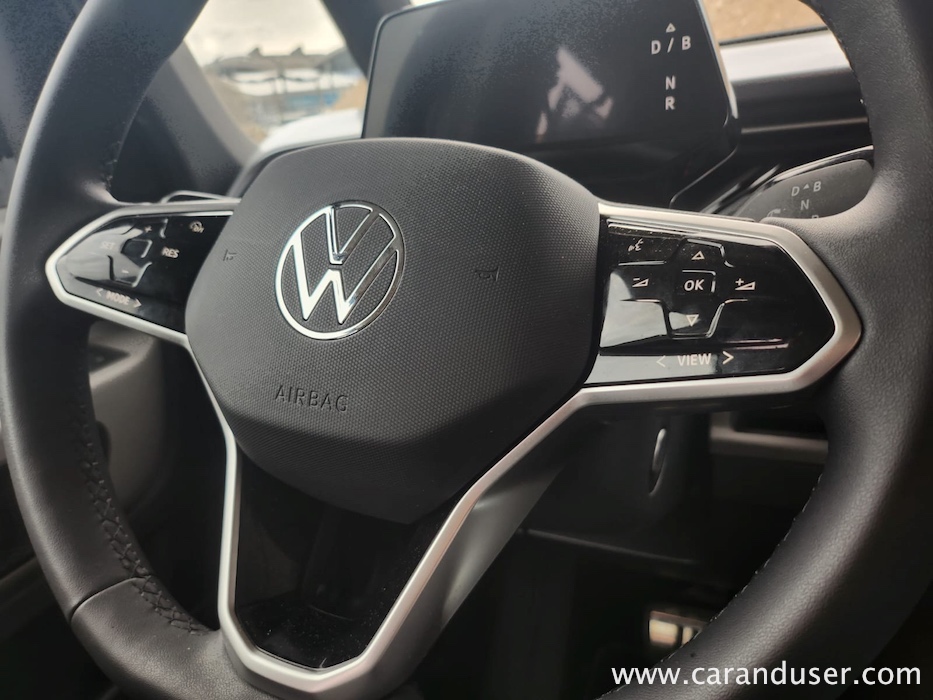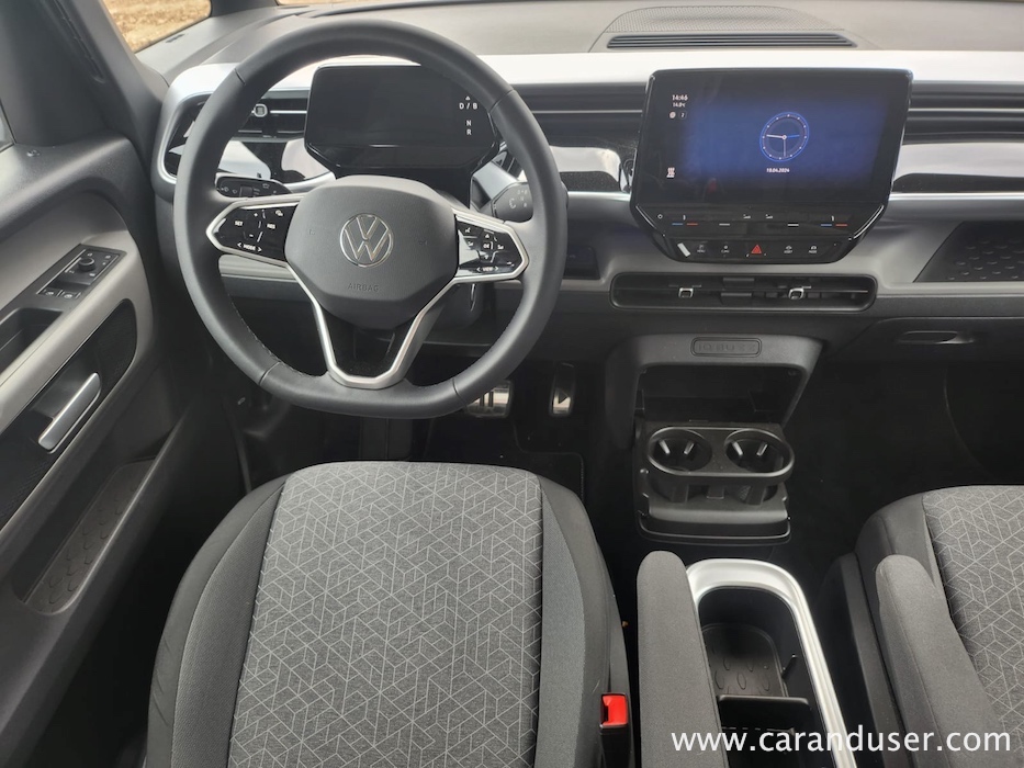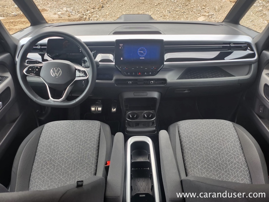 Duh preteklosti se ob odprtju duri tega očarljivega minivana pričakovano razblini. Komandni pult je postavljen malce bolj navpično in tako vsaj za trenutek sledi svojemu predniku izpred nekaj desetletij, vse ostalo spominja na znano VW arhitekturo njihovih električarjev. Za začetek boste v Buzza sedli kot v pravcati kombi, torej preko stopničke, kar nadalje omogoči odličen razgled na okolico. Pred vami se bo razprostrlo precej prostora, saj je vetrobransko steklo dobro umaknjeno, čemur seveda sledi s katano odsekan sprednji nos, na katerega ob aerobiki po mestnih parkiriščih voznik nima prav najboljšega pogleda. K sreči so tu sodobna asistenčna pomagala, ki dogodivščino bistveno olajšajo, vse skupaj pa spremlja sodobna tehnologija iz ID družine, vključujoč obvolanske komande, velik osrednji multimedijski zaslon in speljevanje oziroma parkiranje brez vklapljanja oziroma ugašanja pogona.