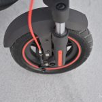 Po jutranji rutini sem napolnil nahrbtnik, si nadel čelado (varnost je vedno na prvem mestu) in se zavihtel na skiro. S 25 km/h sem že drvel po ljubljanskih ulicah. Namesto ročnega nakazovanja smeri, smo tokrat lahko uporabljali vgrajene smerokaze. Zares slabe ceste in kolesarske poti v Ljubljani, tokrat niso bile pretiran izziv, saj je skiro opremljen z dvojnimi sprednjimi in zadnjimi vzmetmi, ki so neravnine suvereno kompenzirale, 10-palčne pnevmatike brez zračnic pa poskrbijo za stabilnost in dober oprijem. Kilometri se hitro nabirajo, a Xiaomi 5 Max omogoča do 60 km dosega (odvisno od terena in načina vožnje).