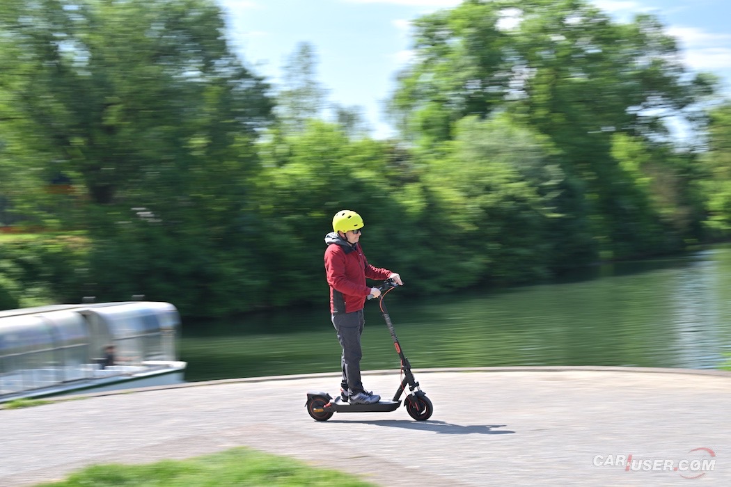 Ob koncu dneva, ko promet doseže vrhunec, lahko mimo stoječe kolone brez težav prispete domov, kljub zakonski omejitvi 25 km/h pa pot opravite hitreje kot marsikdo z avtomobilom. Aplikacija pokaže, da smo z Maxijem prevozili 44 kilometrov, z dosegom še 12 km. Skoraj idealno izkoriščen doseg!