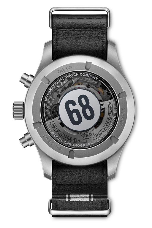 Pilotski kronograf temelji na ohišju premera 43 milimetrov, ki je narejen iz peskanega titana, posledica česa je matirana in temnejša površina. Krona in gumba kronografa so narejeni v istem stilu, medtem ko ohišje obdaja srebrno-črn tekstilni NATO pašček, ki se barvno sklada z dirkalnikom Mercedes-Benz 300 SL IWC Racing. Posebnost izdaje je gravura logotipa Hot Wheels na levo stran ohišja, številčnica, ki posnema kockasto zastavo ter safirni kristal na hrbtni strani, kateri nosi moštveno številko 68. Specifikacije ostajajo poznane. Vodotesnost je odmerjena na 60 metrov. V notranjosti ohišja pa se nahaja avtomatski kronografski mehanizem s 46-urno zalogo energije.