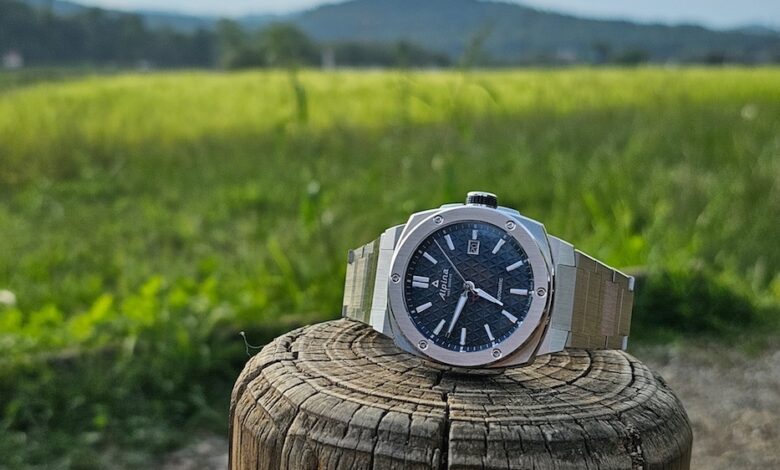 Številčnica je na prvi pogled preprosta, a v sebi skriva zanimive detajle. Teksturo tvorijo logotipi znamke, ki jih prekriva v stilu sončnih žarkov zaključena modrina. Kovinski indeksi dajejo prefinjen izgled, vključno z lepo umeščenim datumskim okencem ob 3. uri. Ob tem opisu bi še kdo pomislil, da gre za elegantno uro, vendar naj opomnim, da tale kos v debelino meri ”le” 11,4 mm, kar je zavidljivo malo za marketinško poimenovano športno uro. Sicer pa, ali nisem omenil, da je Alpiner Extreme Automatic res vsestranska ura?