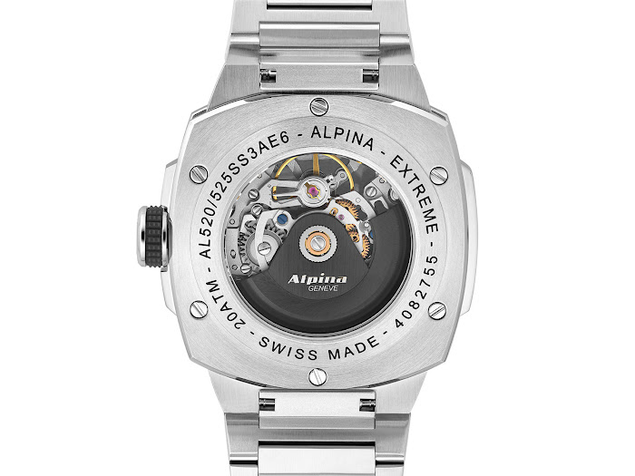 Kaliber AL-520 Skeleton, ki deluje s frekvenco 4 Hz (28 800 alternanc na uro) in ima 38-urno rezervo energije navitja. Alpina Alpiner Extreme Skeleton Automatic z jekleno zapestnico (ref. AL-520GSKT3AE6B) ima predlagano maloprodajno ceno 2.695 evrov, medtem ko je cena modre različice z gumijastim paščkom (ref. AL-520NSKT3AE6) 2.395 evrov
