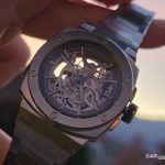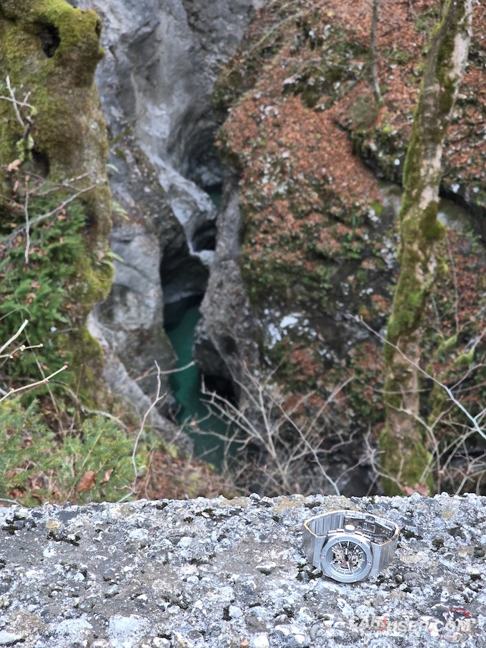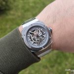 Da omenjeno drži, smo že pobližje spoznali v uredništvu, ko smo gostili referenci Alpiner Automatic ter Alpiner Regulator, katerih zapise si lahko ”prečitate” s klikom na povezavo. Zdaj gre švicarski proizvajalec v korak s trendi. Športna ura z zapestnico v integriranem stilu, ki za nameček ponuja še ogled svojih notranjih organov. Prostora za skrivnosti ni. Elegantna hišna obdelava mehanizma razkriva ležišča zobnikov, rotor, kazalce, nemirko in še več.