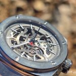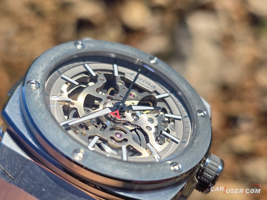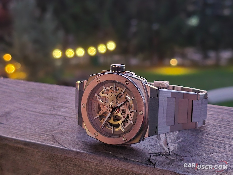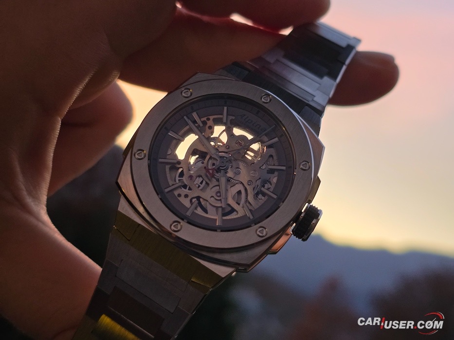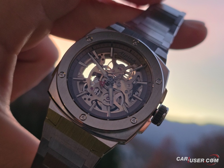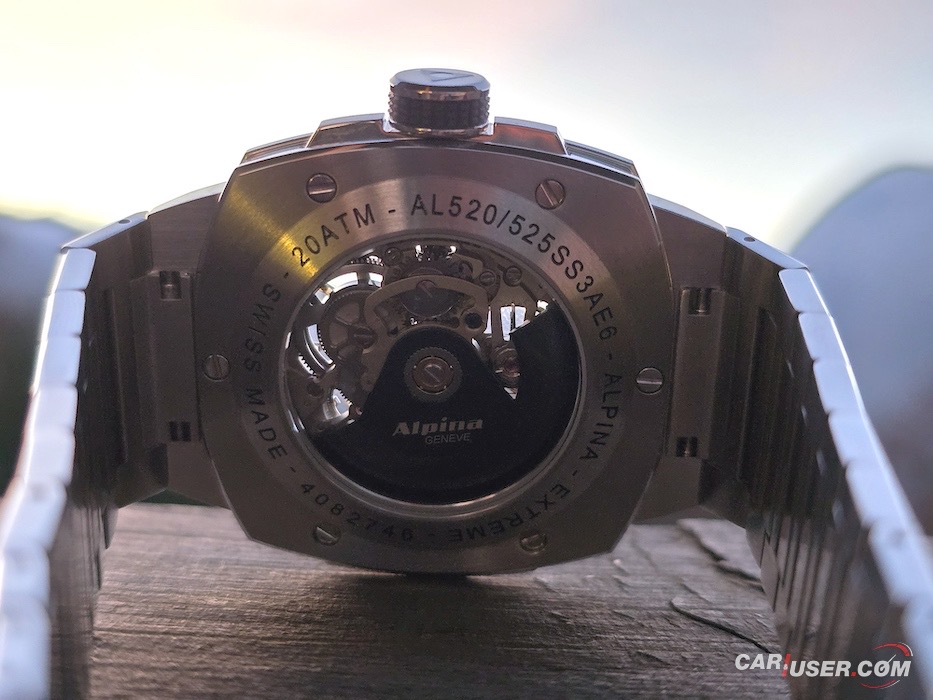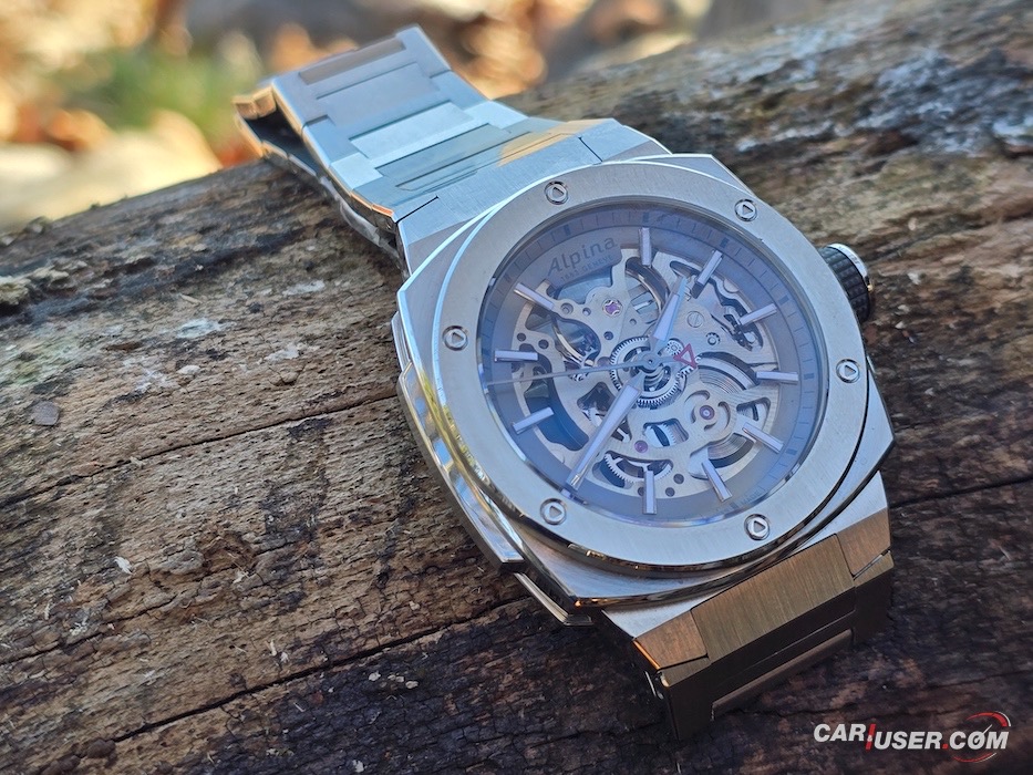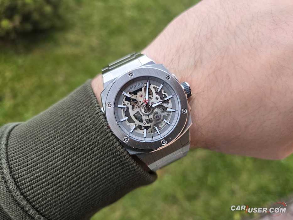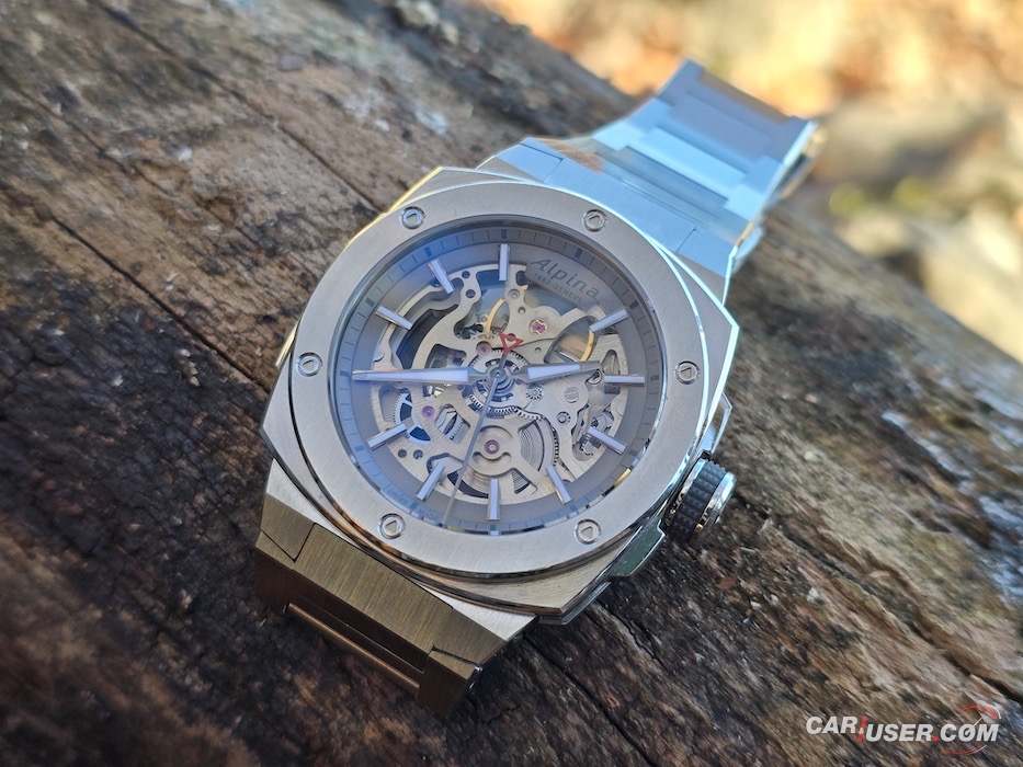 Alpina Alpiner Extreme Skeleton Automatic cilja na nosače, ki stavijo na robustno prezenco ter specifikacije, ob tem pa še občudujejo čarovnijo ”pod pokrovom”. In ko smo že ravno v avtomobilski tematiki … Ohišje testne ure nudi več vodotesnosti kot Land Rover Defender, a obenem ima skoraj toliko robov. In če ste mislili, da je »blazinasta« oblika ohišja stvar starih Seikotov, se motite.