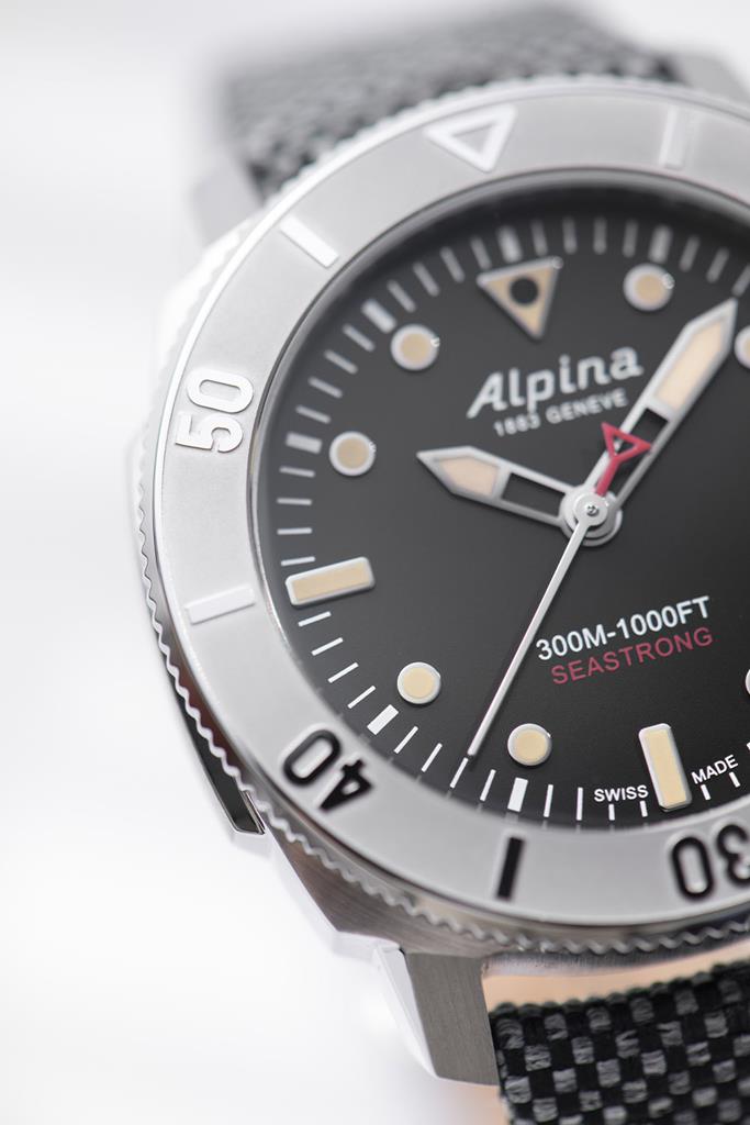 Številčnica te Alpina Seastrong Diver 300 Automatic Calanda prav tako igra na retro vibracije in je popolnoma drugačna od izdaj, ki jih najdemo v stalni zbirki. Ima mat črno številčnico z zrnato končno obdelavo in manjšimi, bolj tradicionalnimi nanesenimi indikatorji. Ti so napolnjeni s starim luminiscenčnim materialom radijev SLN, kateri je nanesen na kazalce. V notranjosti ohišja se nahaja preizkušen avtomatski mehanizem, kaliber AL-525, kar je pravzaprav hišno ime za znani pogon Sellita SW200-1.
