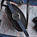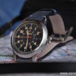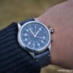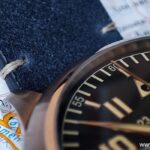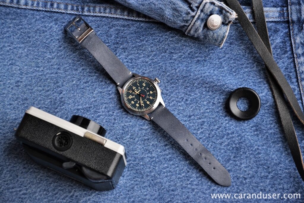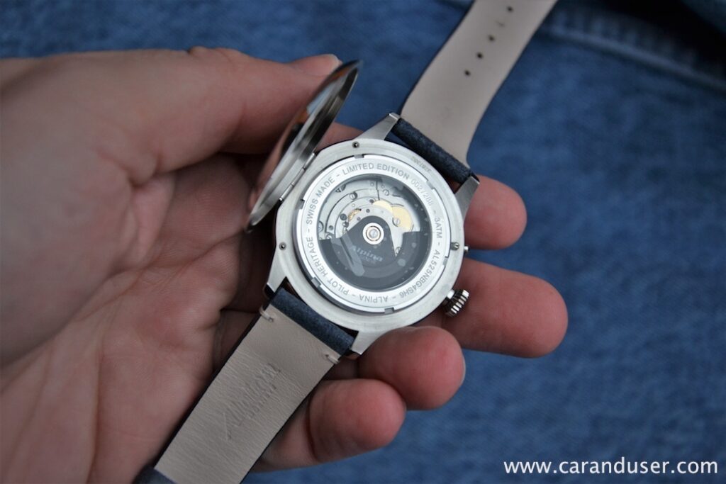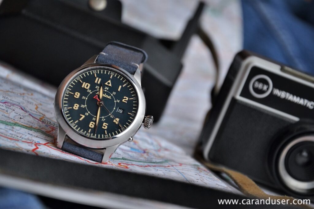 Sicer pa, ali veste po čem se prepozna pilotsko uro? Največkrat je to trikotnik na mestu 12. ure. Potem si sledijo še tipične arabske številke v zaporedju od 1-12 ali 05-55. Pogosto se na številčnici pojavi tudi kakšen rdeč ”pointer” detajl, ekskluzivno v obliki letala, ali pa navijalna krona v obliki čebule. Slednja je sila dominantna na modelu Startimer Heritage Automatic Limited Edition. Z njo se upravlja čas, datum in navijanje mehanizma. A z markantnostjo najbolj izstopa modra številčnica, ki je med večtedensko nošnjo požela številne poglede in pohvale. Vsebuje vse omenjene atribute ”flieger” ur, ki jih še dodatno začini z arabskimi indikatorji ur v vintage bež barvi. Svoje pristavijo še enako obarvani kazalci ter sekundni kazalec z rdečim trikotnikom, zaščitnim znakom blagovne znamke Alpina.
