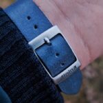 Preprost, a hkrati dovolj samosvoj je moder pašček iz telečjega usnja, ki mehko zaobjame zapestje, medtem ko je kovinska zaponka z gravuro logotipa podjetja zasnovana tako, da nudi še dodatno varnost pred snetjem paščka. Čeprav le-ta ne ponuja trendnega sistema za hitro menjavo, se ga vseeno da zamenjati, le malce več časa vam bo vzel takšen podvig – sklepam, da bi se uri dobro podal rjav pašček, kakršen je pri Alpini v ponudbi pri standardnem modelu s črno številčnico.