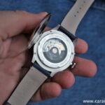 S širino paščka 20 mm in 44 mm premerom kovinskega ohišja s poliranimi in brušenimi detajli, je primerna za zapestja z več kot 16 centimetri obsega. Moje oziroma to na fotografijah meri med 19 in 20 cm, toliko, da imate občutek. Ušesa se lepo raztezajo vzdolž zapestja in segajo 53 mm od enega do drugega konca. Če boste odmerjali prostor za uro na vašem zapestju vsekakor priporočam, da poleg premera upoštevate tudi dolžino samega časomera.