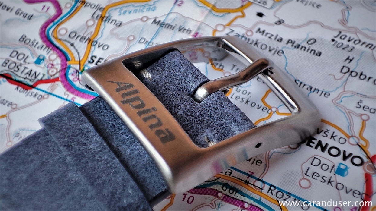 Preprost, a hkrati dovolj samosvoj je moder pašček iz telečjega usnja, ki mehko zaobjame zapestje, medtem ko je kovinska zaponka z gravuro logotipa podjetja zasnovana tako, da nudi še dodatno varnost pred snetjem paščka. Čeprav le-ta ne ponuja trendnega sistema za hitro menjavo, se ga vseeno da zamenjati, le malce več časa vam bo vzel takšen podvig – sklepam, da bi se uri dobro podal rjav pašček, kakršen je pri Alpini v ponudbi pri standardnem modelu s črno številčnico.