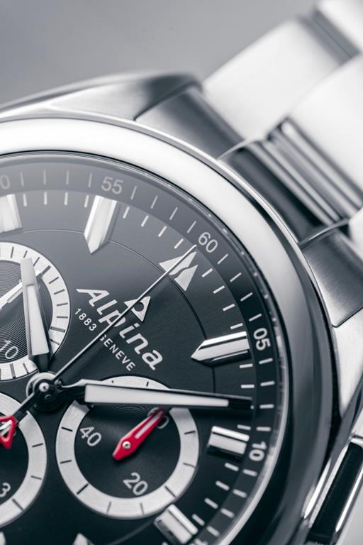 Športni zaplet par excellence se na črni številčnici razlikuje s tremi števci, okrepljenimi s srebrnim krogom, v središču katerega se obračajo kazalci, prevlečeni s luminiscenčnim materialom. Ob 12. uri namesto znamenitega rdečega trikotnika Alpina, ponosno sedi logotip Freeride World Tour, ki predstavlja izrazite alpske vrhove.