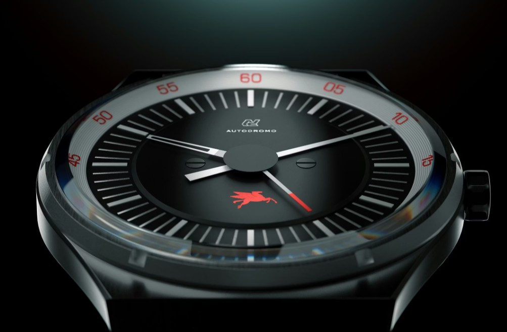 Autodromo x Mobil 1 Group B Pegasus Edition temelji na črnem ohišjeu iz nerjavečega jekla s prevleko DLC, ki obdaja titanovo jedro. Ura meri 39 mm x 9,9 mm in ima vgrajeno zapestnico z zaponko v obliki metulja. Številčnica je kontrastno črna, navdihnjena z vintage dirkalnimi tahometri. Kazalci in številke so svetleči, prav tako kot rdeči poudarki logotipa Mobil 1 Pegasus in rdeča minutna skala na sivem rehautu.