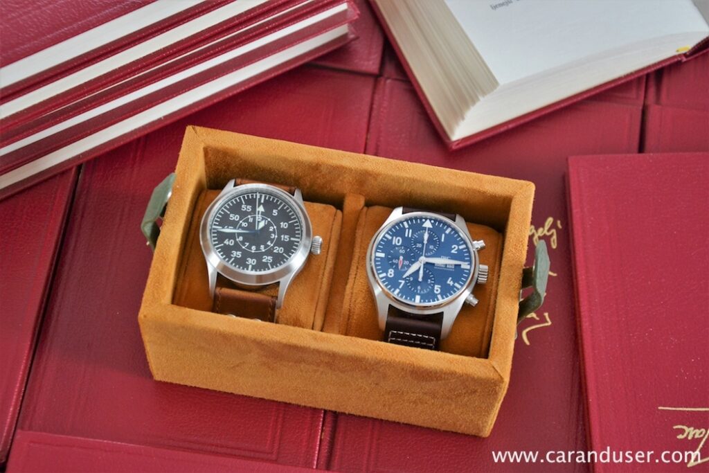 Obstaja še ena varianta in sicer, da uro namestite le na eno mehko blazinico, medtem ko drugo odstranite in s tem naredite prostorček za druge drobnarije. In če že v nedogled zapisujem pluse, naj nanizam še kakšen minus. Pravzaprav je bolj ali manj samo en in to je, da je škatla malenkostno limitirana na tehnične specifikacije ohišja ure. Slednje ne sme biti predebelo kakor tudi ne preširoko oziroma predolgo. Kot primer služi ura IWC Big Pilot, čez katero se posledično ne da zapreti pokrova notranje škatle.