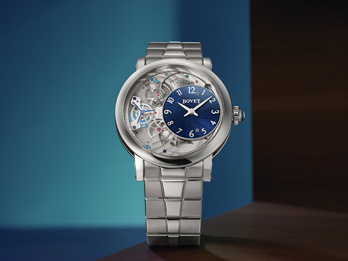 Poleg tega je zapestnica elegantno združena z ohišjem dimenzij 40 mm x 9,8 mm, izdelanim iz poliranega titana stopnje 5. Lahek in močan material je idealen za ure, saj je zelo odporen proti koroziji, praskam in je hipoalergen. Natančneje, Bovet uporablja titan stopnje 5, zlitino, ki vsebuje 90 % titana, 6 % aluminija in 4 % vanadija, kar omogoča izboljšano končno obdelavo v primerjavi s titanom stopnje 2.