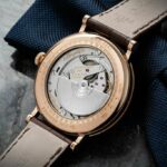 Še nekaj osnov. Ohišje meri gibkih 39 mm × 9,95 mm in je opremljeno s pričakovanimi baročnimi poudarki nagubanega traku ohišja ter privarjenih ušes s privitimi vzmetnimi palicami. Najnovejši Breguet 7337, ki je na voljo v 18-karatnem belem ali rožnatem zlatu s številčnico v srebrni barvi, ima v obeh različicah priporočeno prodajno ceno 42.000 evrov.