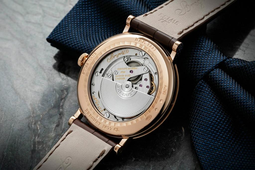 Breguet za pogon uporablja avtomatski mehanizem, kaliber 502.3 QSE1. Tanek kaliber, visok le 2,4 mm, je opremljen z vsemi tehničnimi dodatki, ki bi jih pričakovali od sodobnega mehanizma Breguet, vključno z necentralno nihajočo utežjo iz trdnega belega zlata, silikonsko vzmetjo za ravnotežje in edinstveno zasnovanim izhodom z uporabo obrnjene ravne črte palete s silikonskimi rogovi. Vse dogajanje je vidno skozi razstavno hrbtno stran ohišja iz safirnega stekla, ki razkriva rodirane premostitve in tradicionalne ženevske črte.