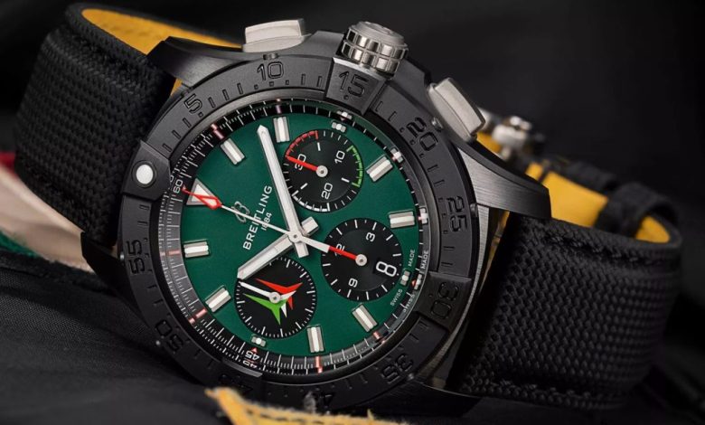 Kolekcijo Breitling Avenger odlikuje to, da je izdelana iz materialov, kot sta keramika in titan, ki sta enako vzdržljiva materiala, kot se uporabljata pri oblikovanju letal. Zaradi napredne mehanike in zanesljivosti je priljubljena med piloti ter ljubitelji pustolovščin. Avenger B01 Chronograph 42 Frecce Tricolori ima matirano zeleno številčnico s paličastimi urnimi oznakami in kazalcem kronografa z rdečim koncem. Števci so kontrastno črni, z emblemom Frecce Tricolori na mestu ob 9. uri.