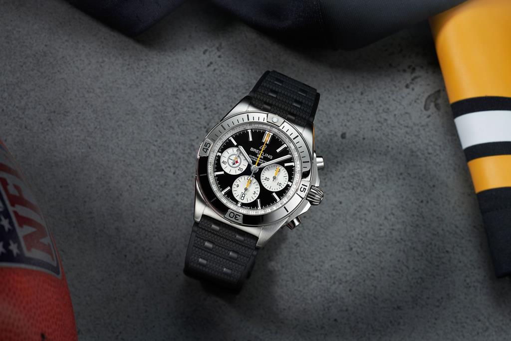 Breitling v sodeluvanju z NFL predstavlja kar 32 izdaj zapestne ure Chronomat 42. Vsaka različica bo izšla v nakladi 104 kosov v počastitev 104. obletnice NFL, žal pa so ure na voljo za nakup le v ZDA.